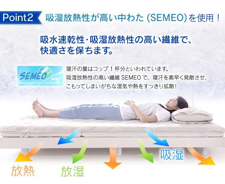 こもりがつな熱を拡散してくれる放熱性。寝具内をサラッと快適に調節してくれます。