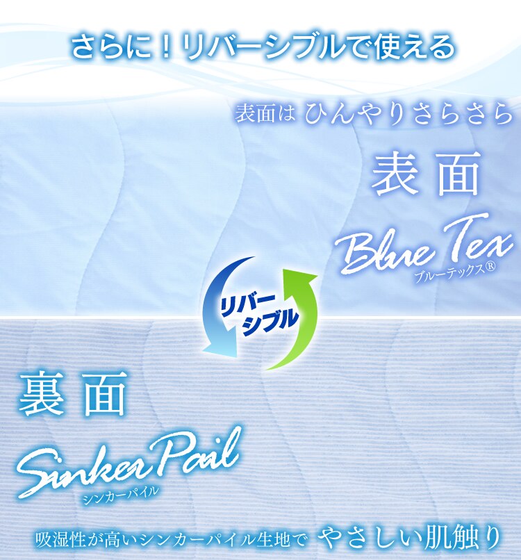 お好みの生地面を選んでご使用頂けるリバーシブル仕様の敷パッド。