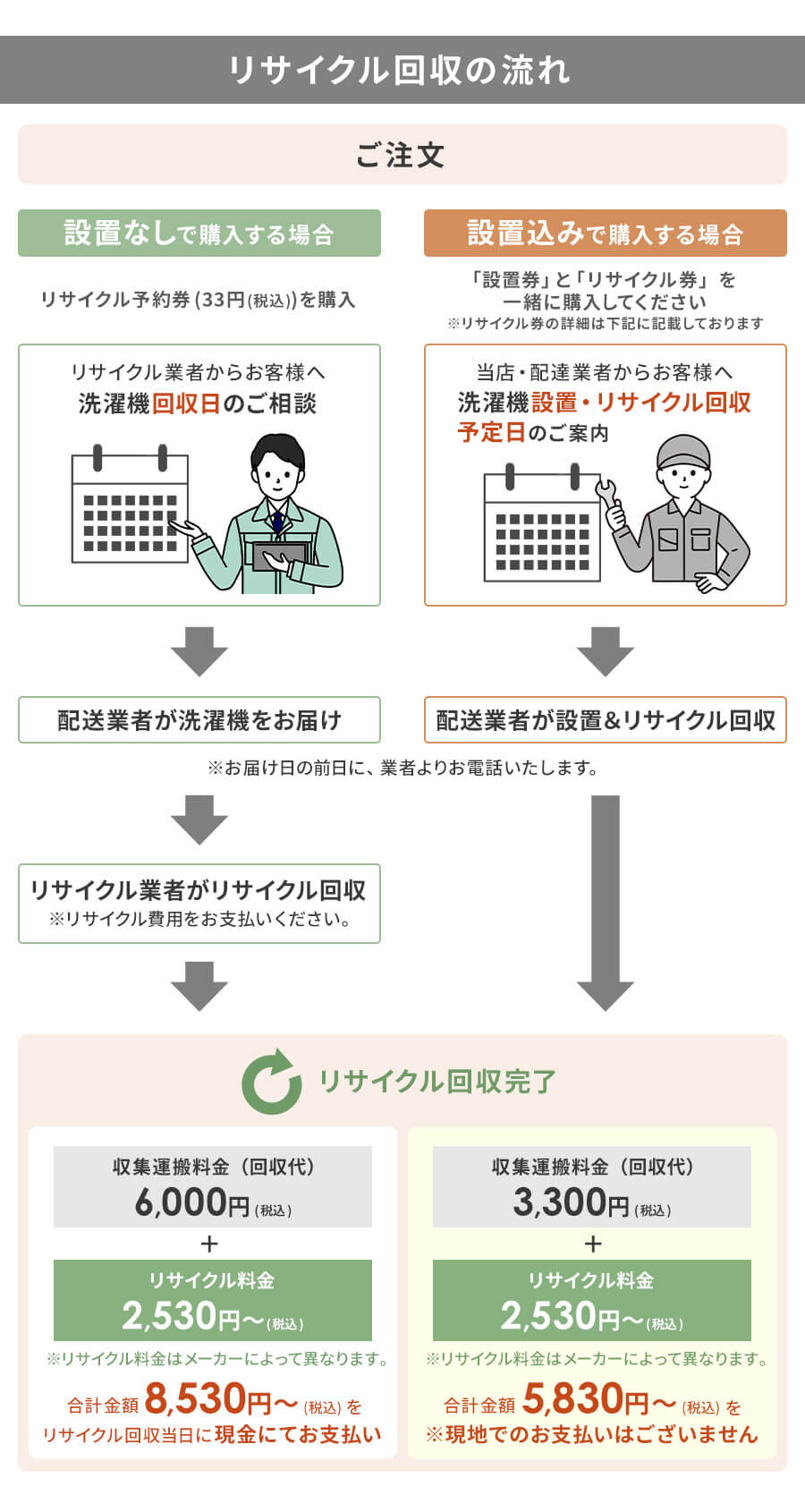 リサイクルをご希望の場合は、リサイクル希望の洗濯機に合うリサイクル券を合わせてご購入ください。