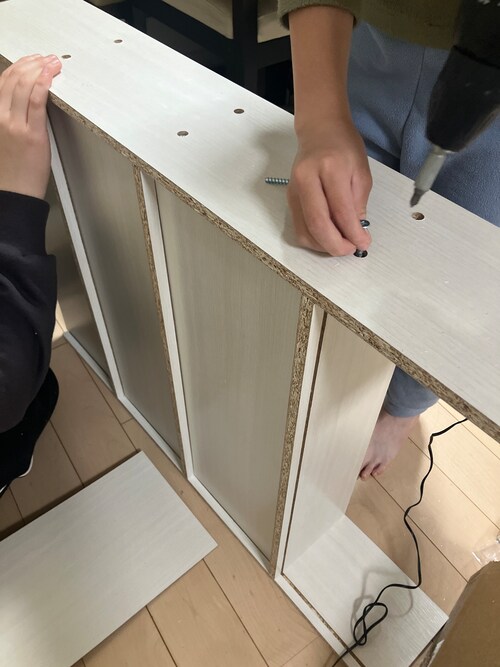 - 組み立ては、二人で電動工具でやりました。難しくはないですが、やはり、大型なので二人いないと組み立ては不可でしょう。