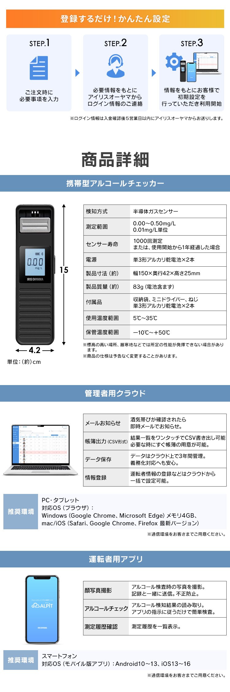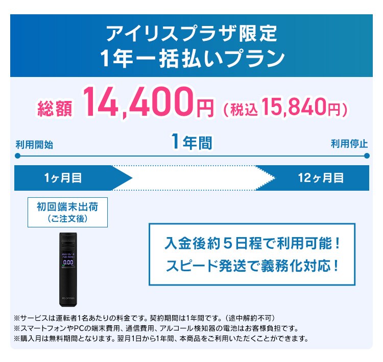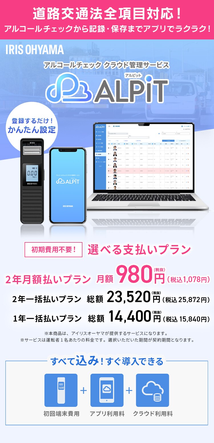 アルコールチェッカークラウド管理サービス「ALPiT」端末込み Bluetooth版 IRALC-M1000 【2年一括払い】