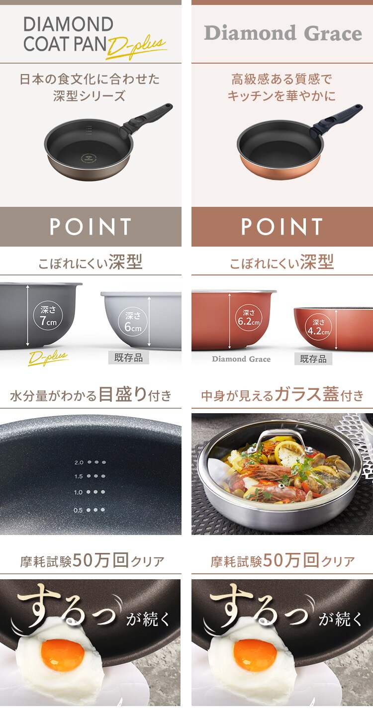 人工ダイヤモンドを細かい粒子状にして、ふっ素樹脂コーティングに配合した「ダイヤモンドコーティング」仕様。