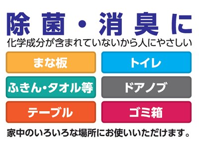 食卓やまな板、キッチン用品などの除菌に使用できます。