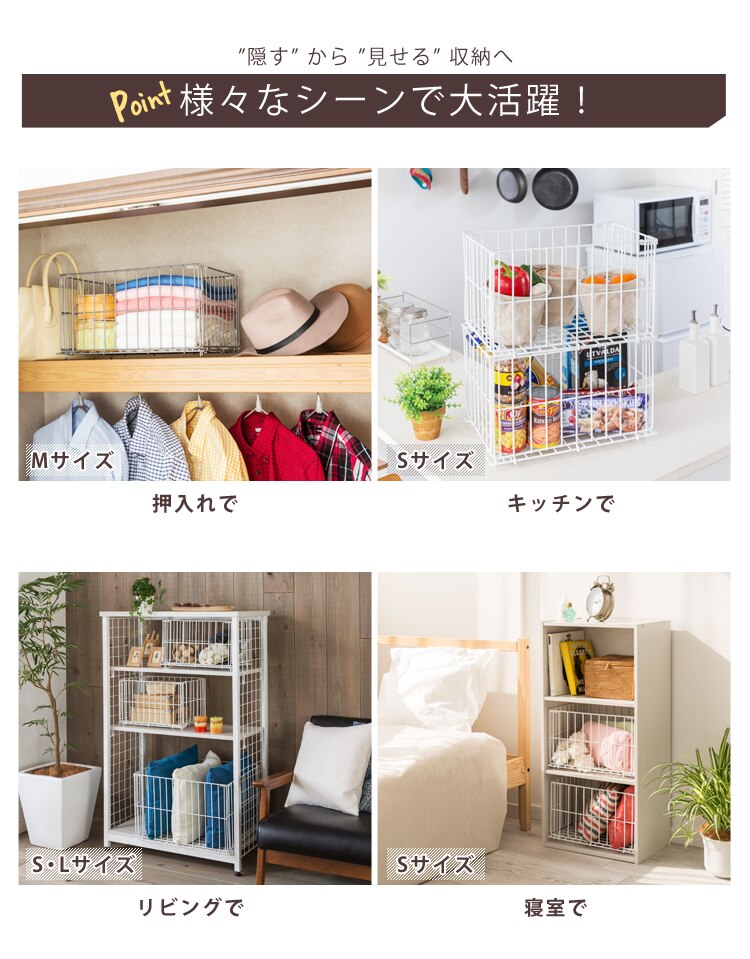 様々なシーンの収納として活躍するワイヤーコンテナです。