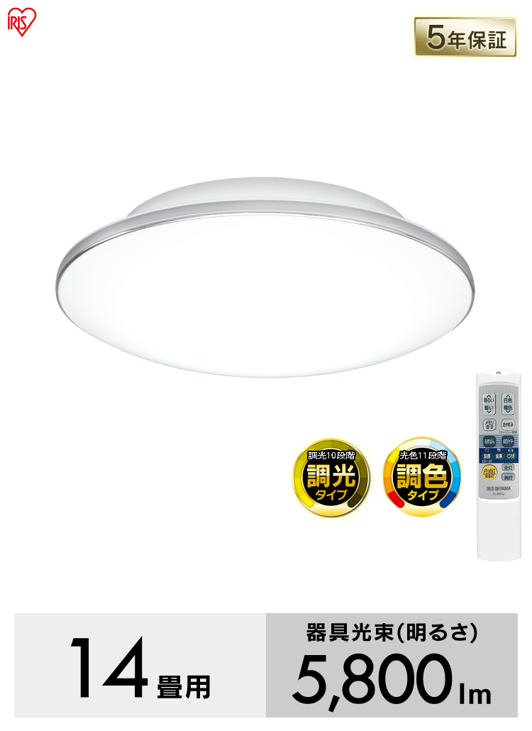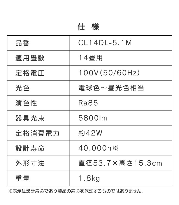 - 【2個セット】 LED シーリングライト 14畳 調光 調色 工具・工事不要 リモコン付き 5年保証 CL14DL-5.1M