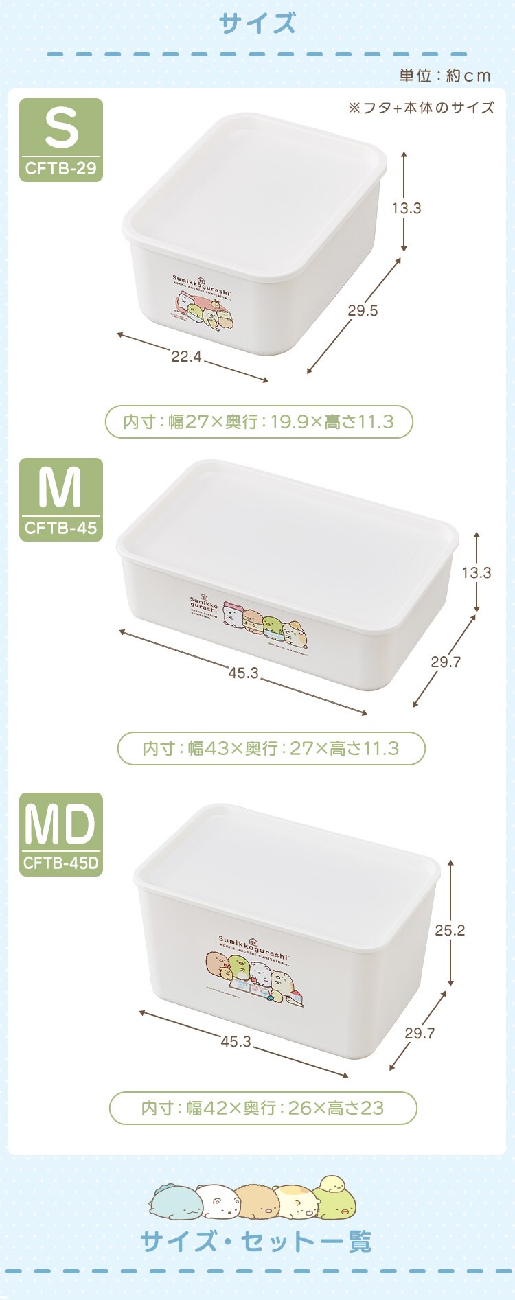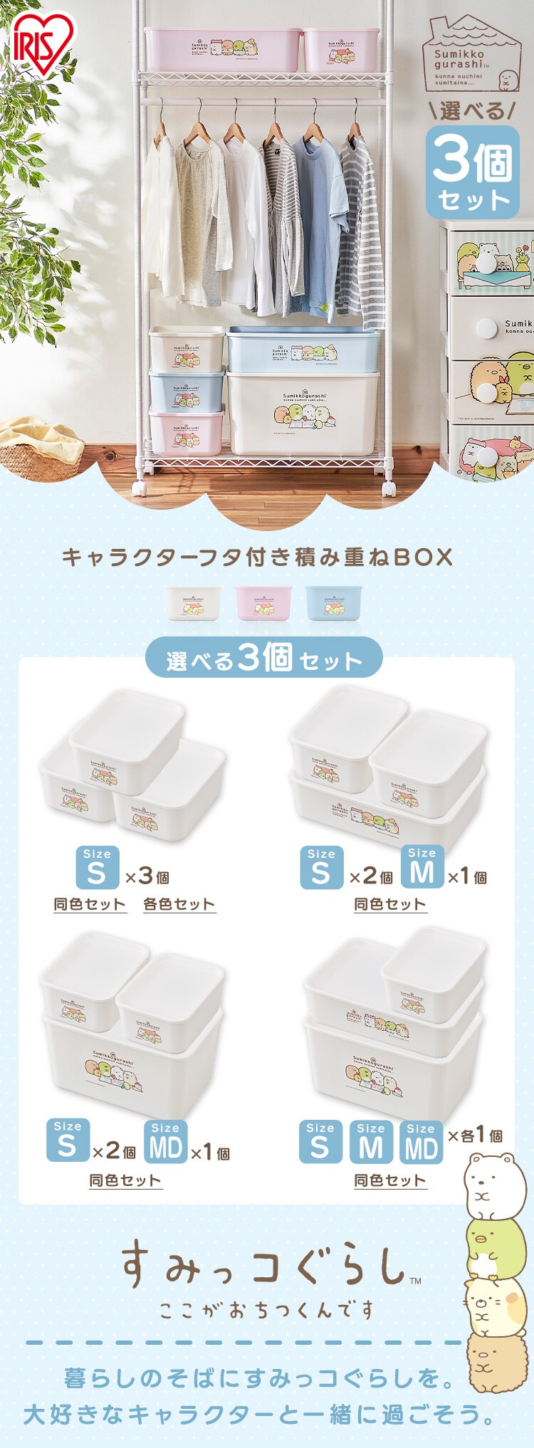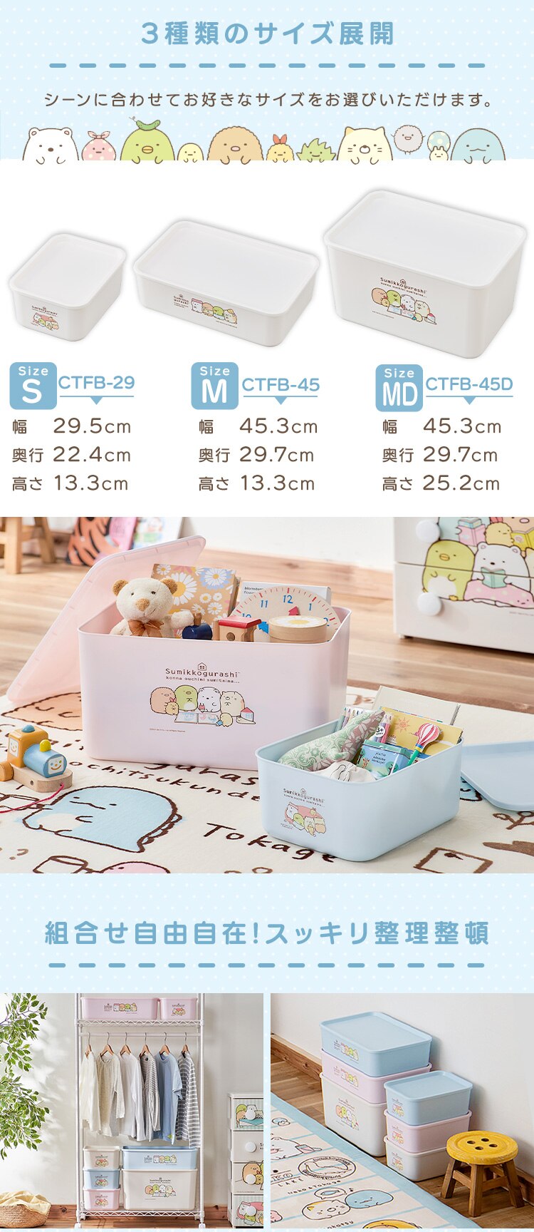 【3個セット】 フタ付き収納BOX Sサイズ ホワイト/ピンク/ライトブルー すみっコぐらし CFTB-29