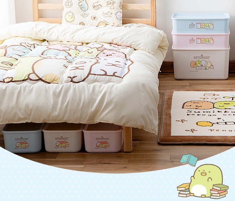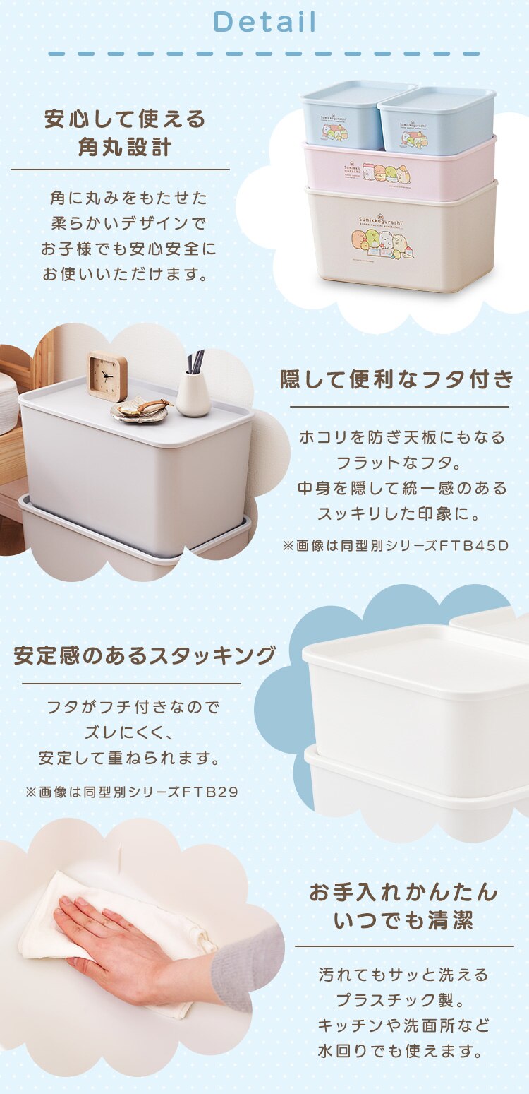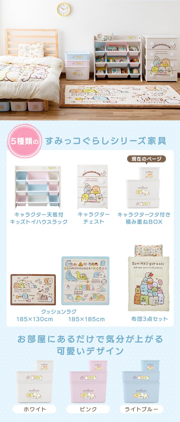 - 【3個セット】 フタ付き収納BOX Sサイズ ホワイト/ピンク/ライトブルー すみっコぐらし CFTB-29