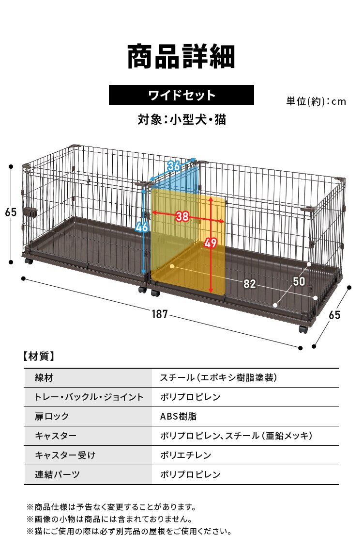 ※ペットの年齢や種類・性格・個体差により、線材のすき間にはさまったり、逃げてしまうおそれがあります。十分に注意してご使用ください。