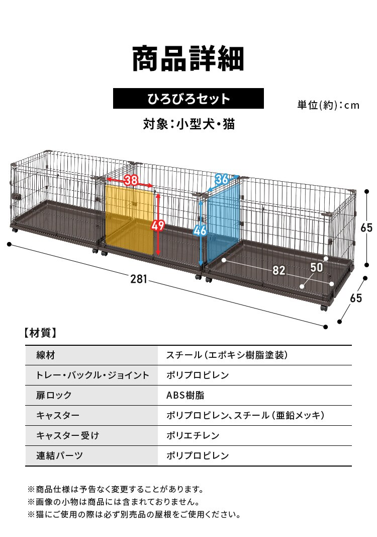 ※ペットの年齢や種類・性格・個体差により、線材のすき間にはさまったり、逃げてしまうおそれがあります。十分に注意してご使用ください。
