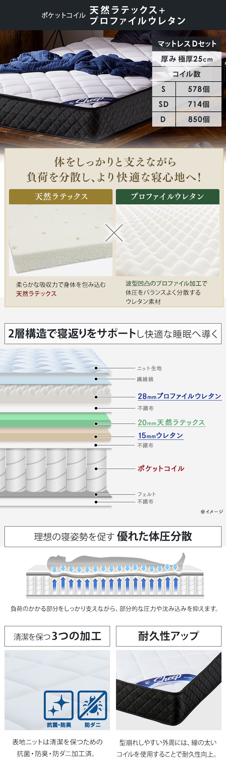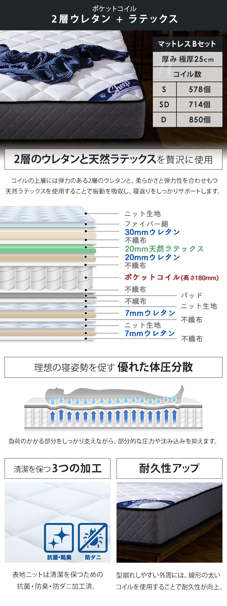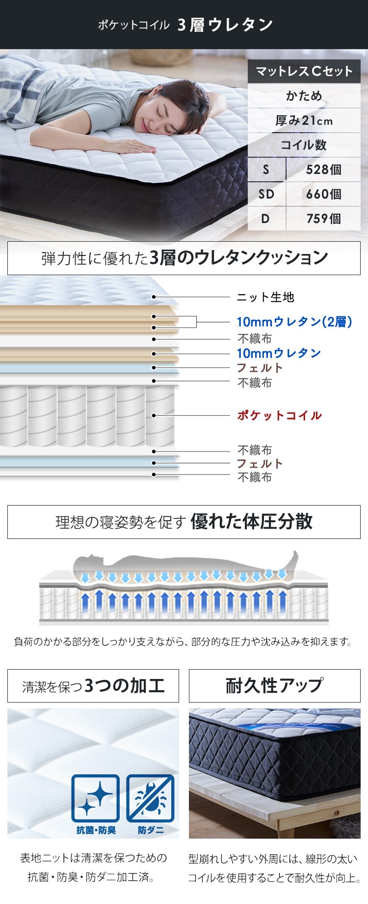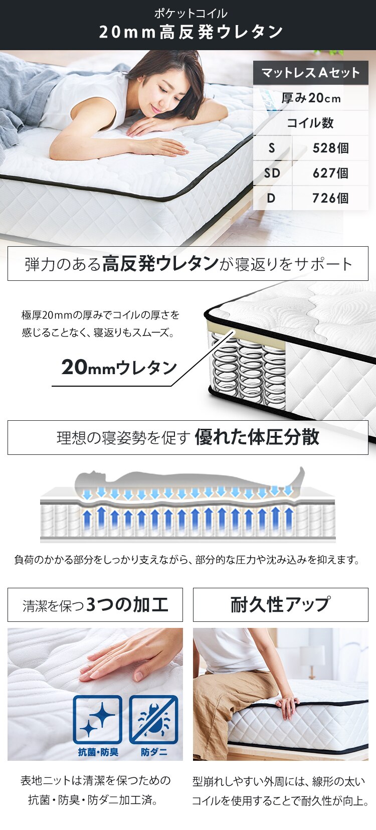 【マットレスセット】ベッド シングル 収納付き DSBM-S ライトナチュラル+ポケットコイルマットレス 20cm