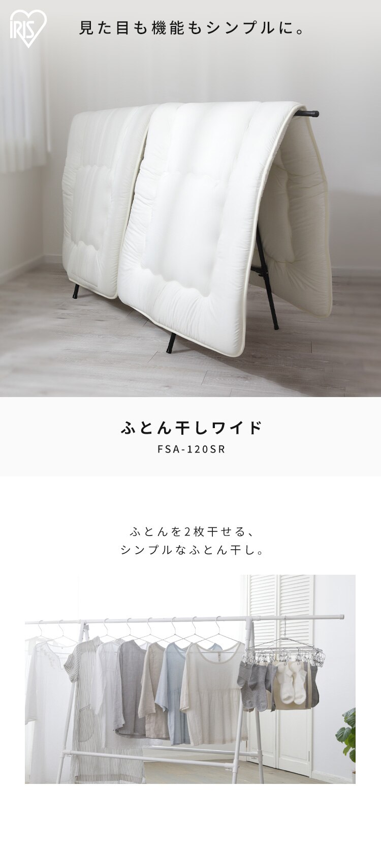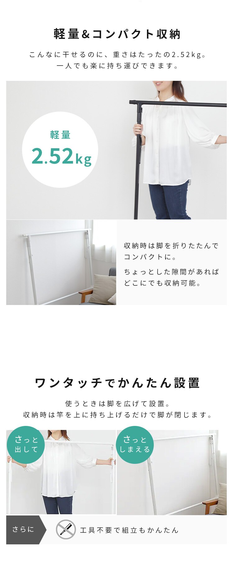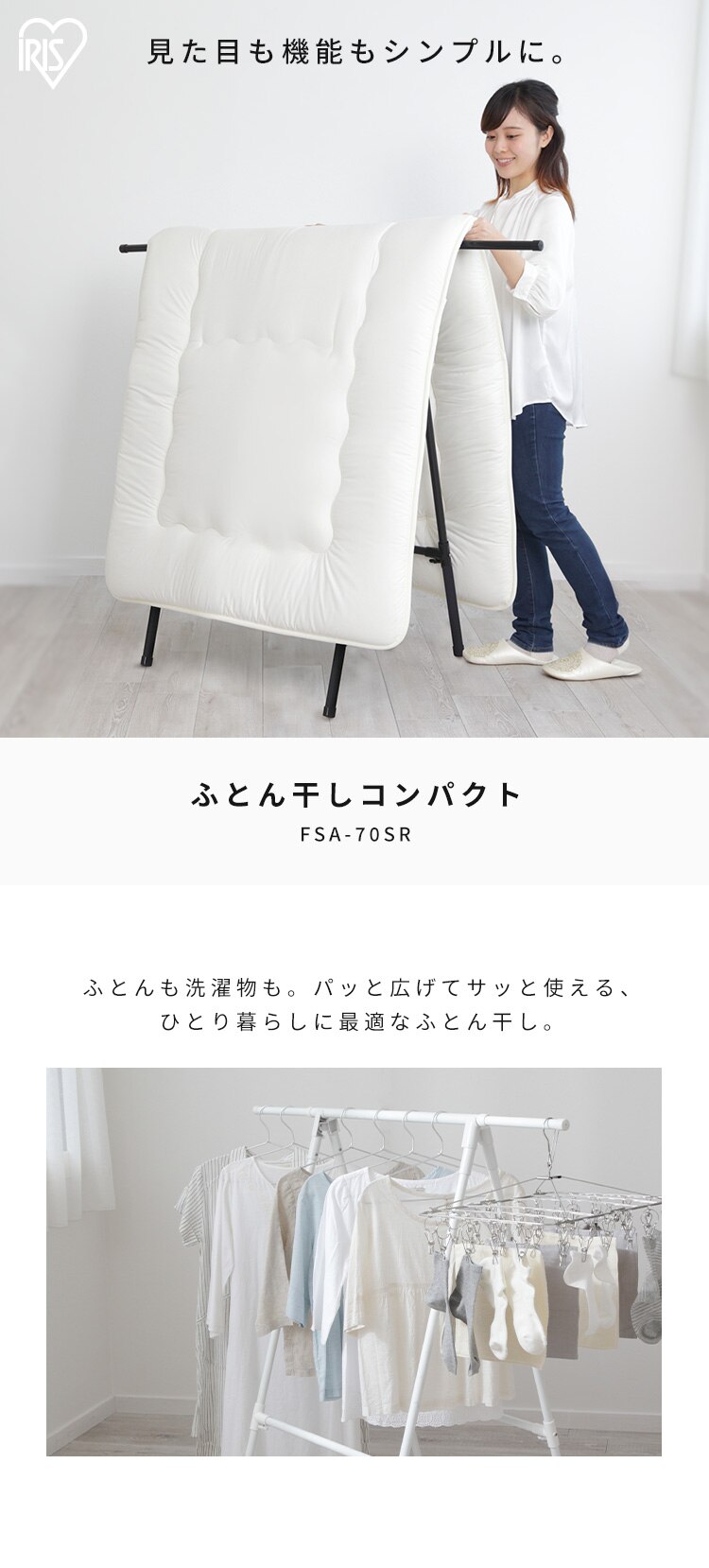 ふとんも洗濯物も、パッと広げてサッと使える。