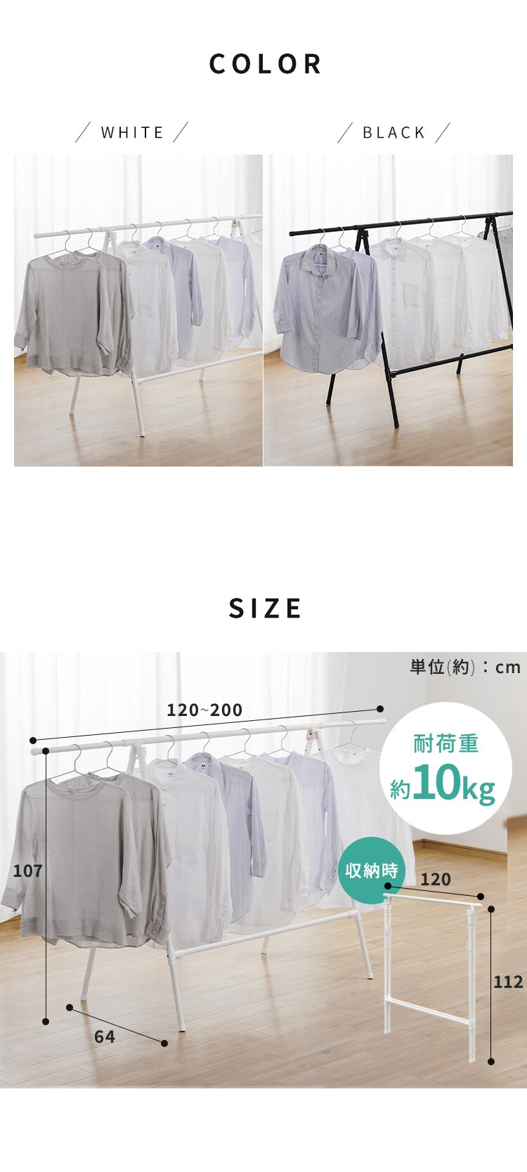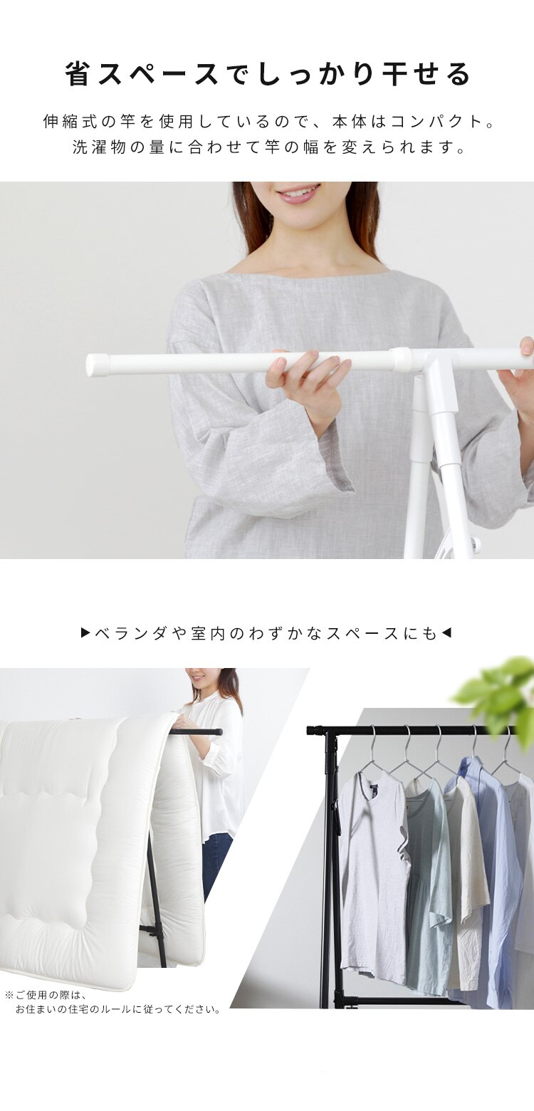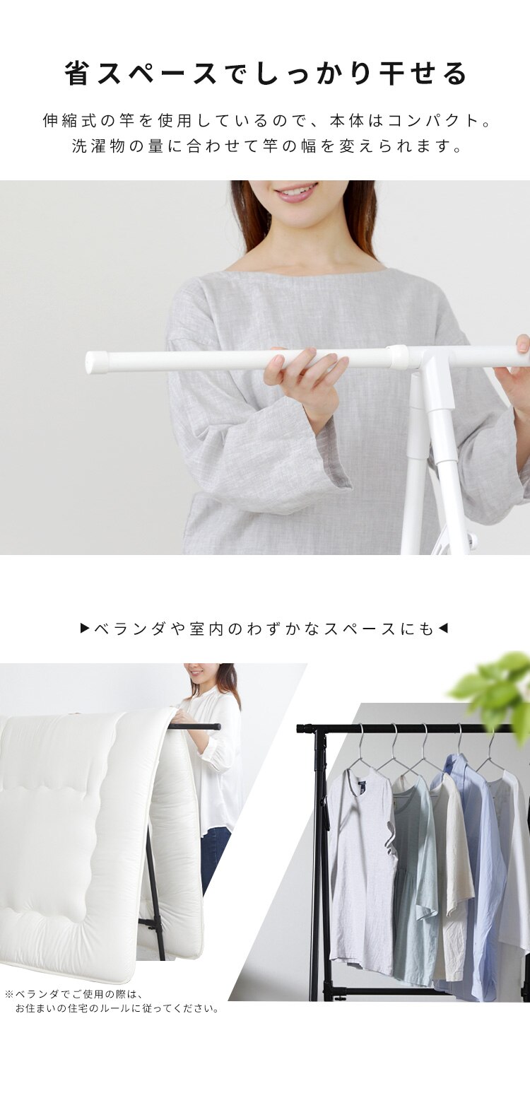 干す量や場所に合わせて幅を変えられます。