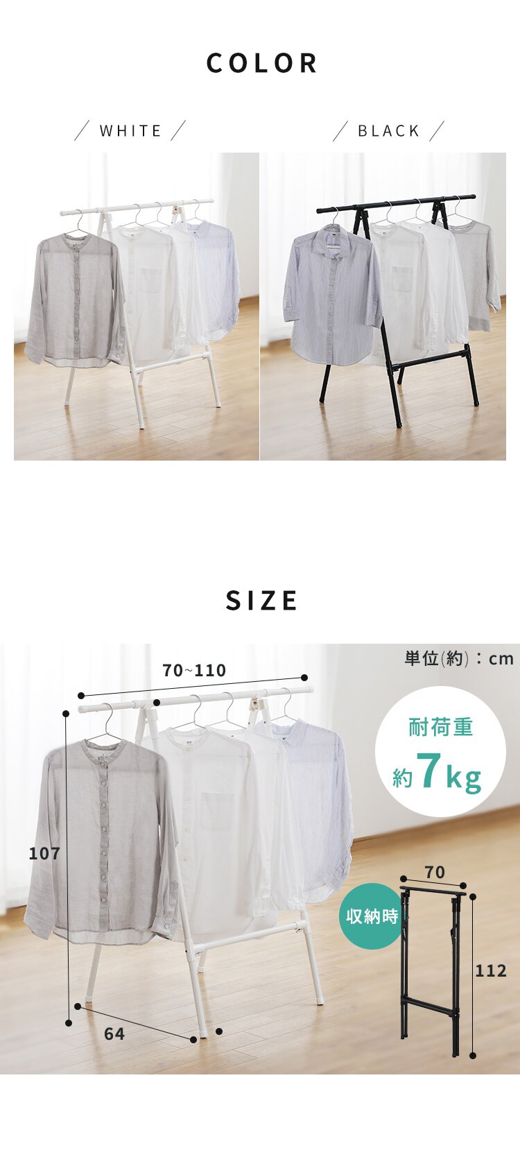 収納時:幅約70×奥行約7×高さ約112