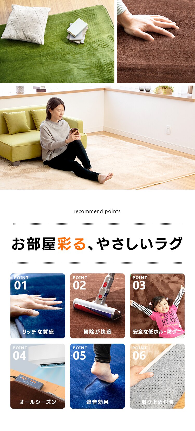 - フワフワして気持ちいいです。床暖房つけなくても暖かいので節電になります。