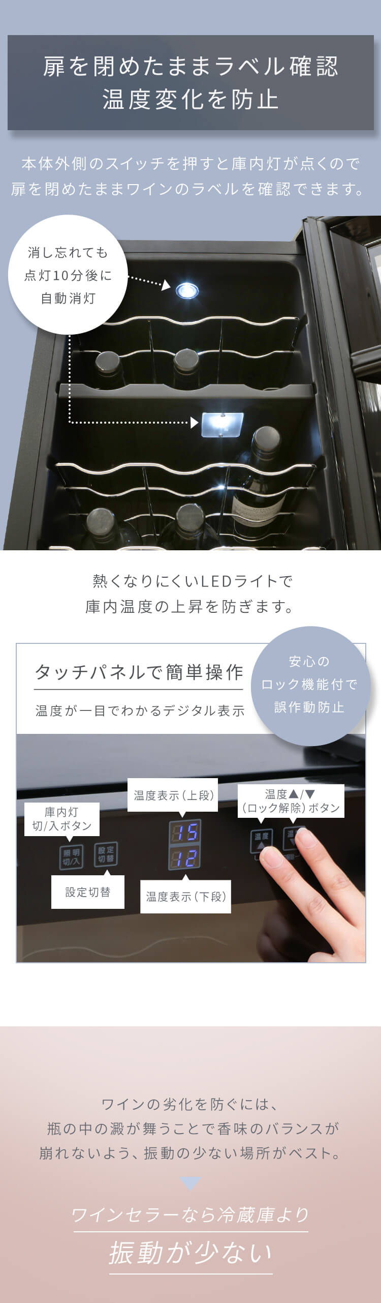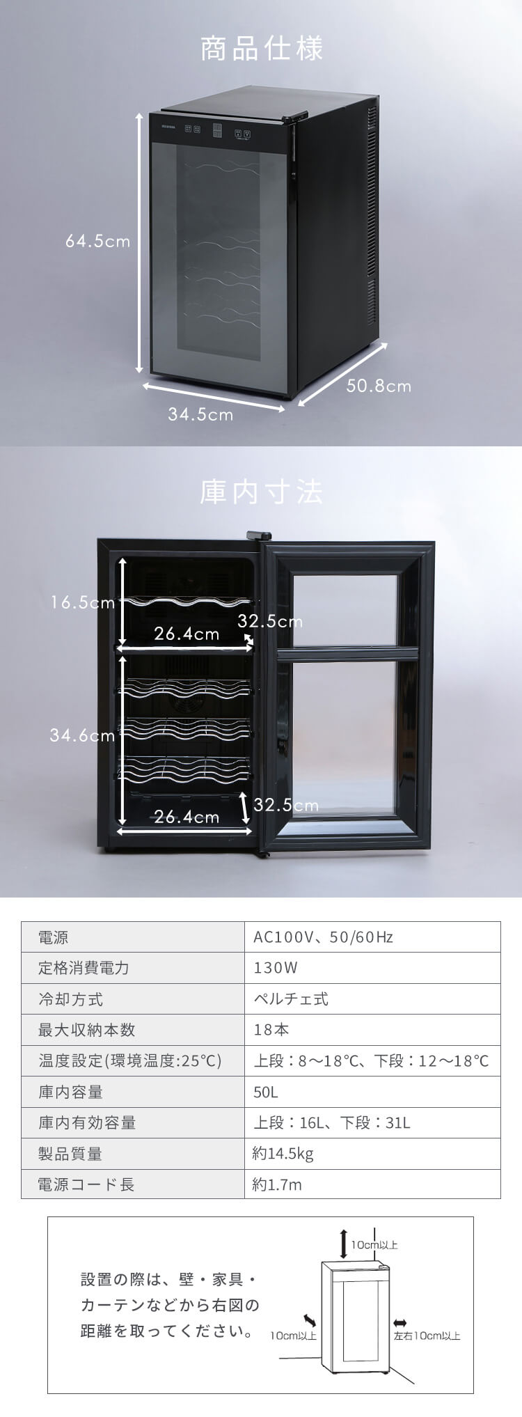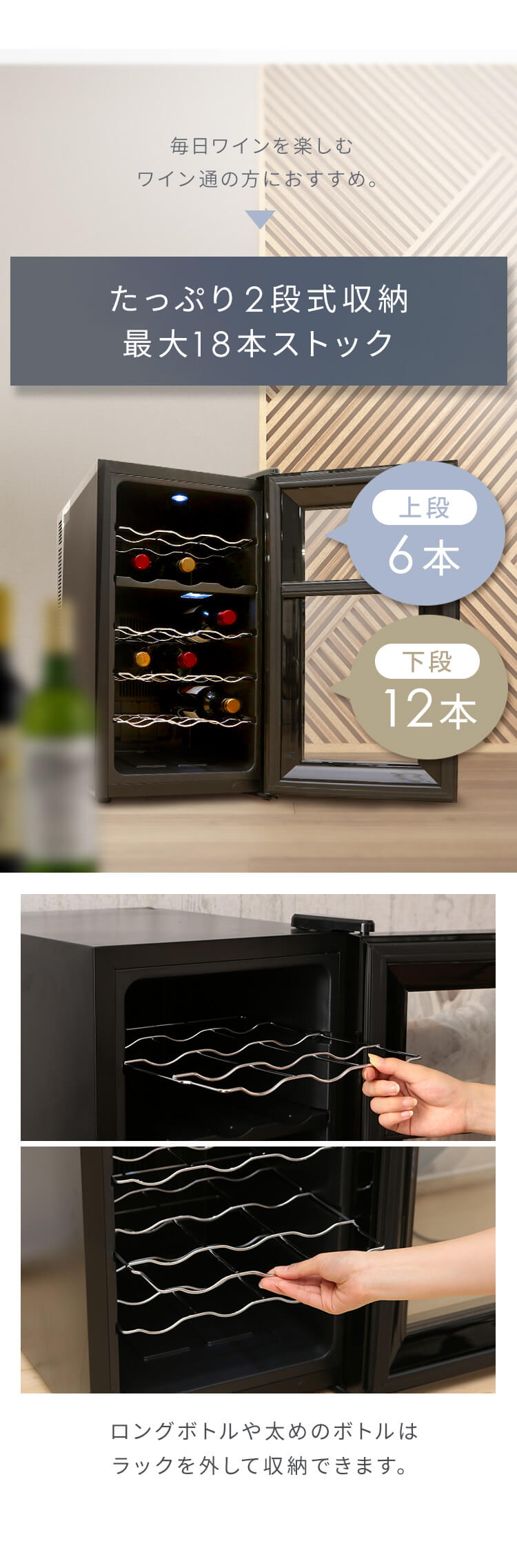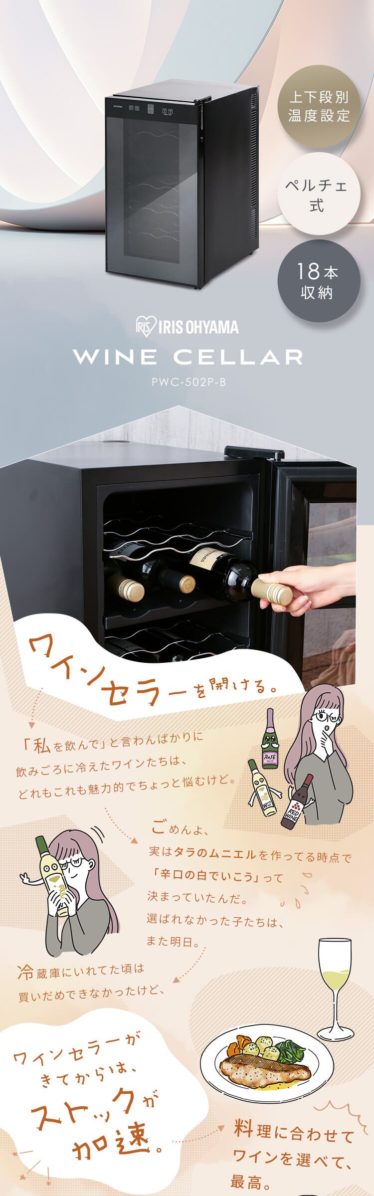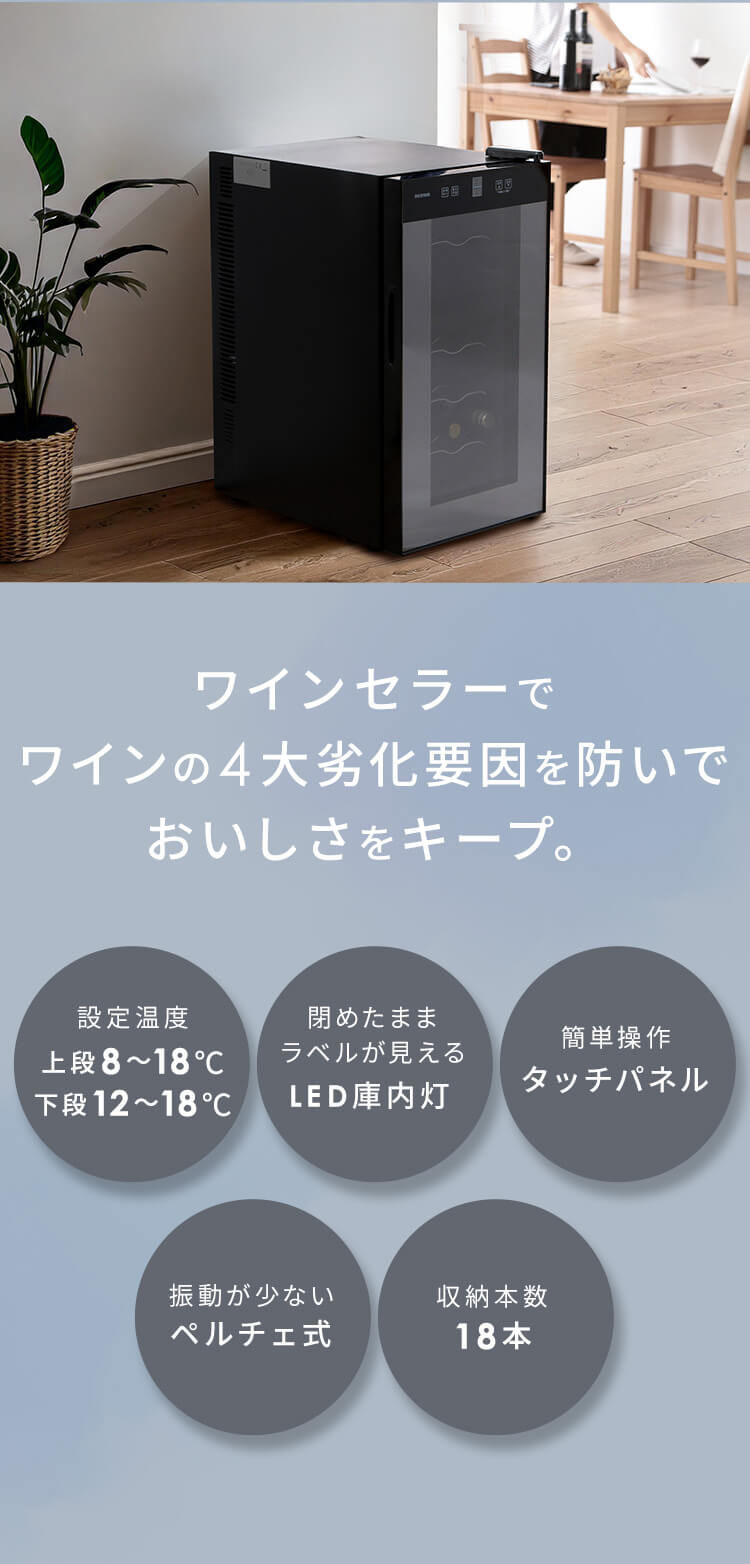 ワインセラー 18本 50L ペルチェ式 タッチパネル PWC-502P-B ブラック