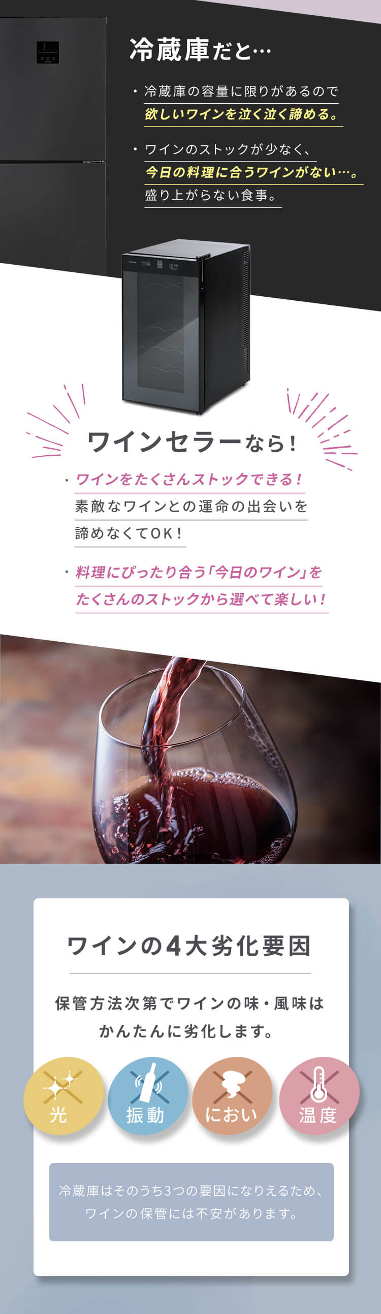 ワインセラーがあれば、保管の難しいワインを、自宅で気軽に美味しく楽しめます。