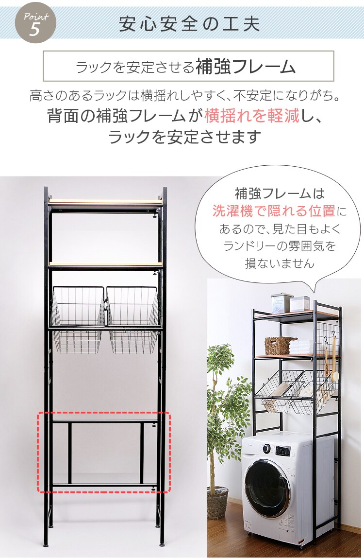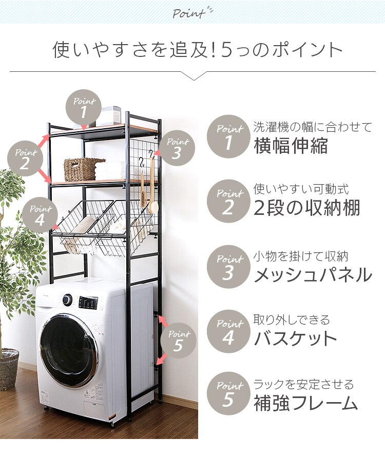 洗濯機上の空いたスペースを有効活用できます。