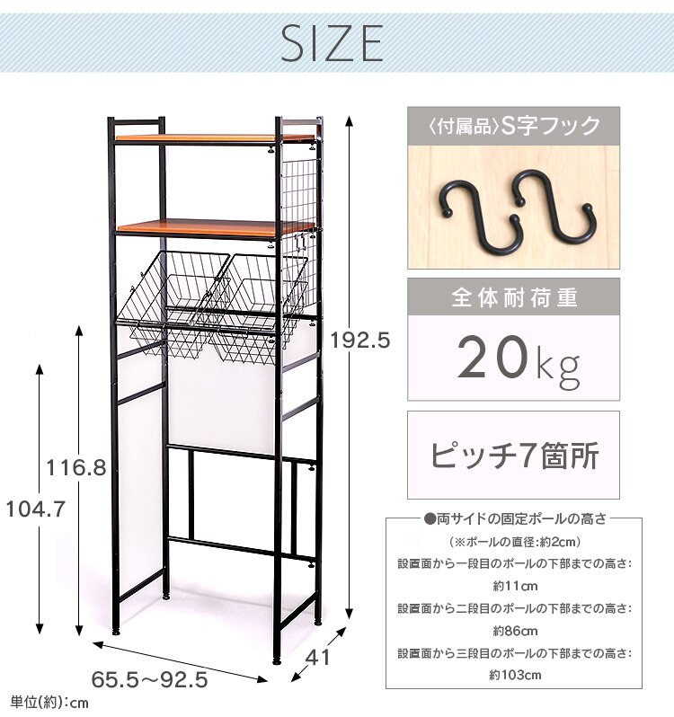 ●商品サイズ(cm):幅約65.5〜92.5×奥行約41×高さ約192.5