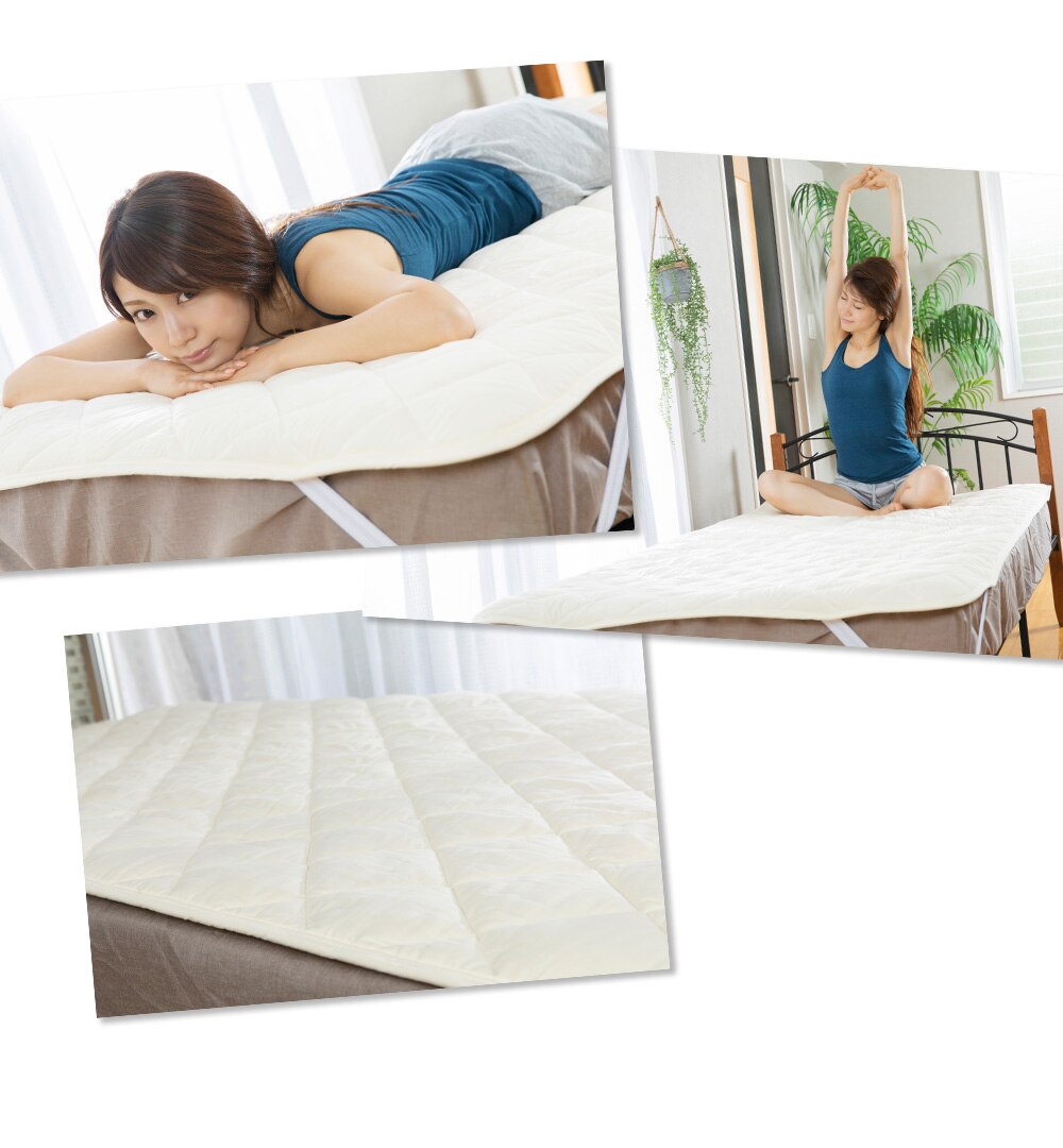 - 抗菌防臭・洗える羊毛混ベッドパッド シングル S アイボリー AKBYBP-S