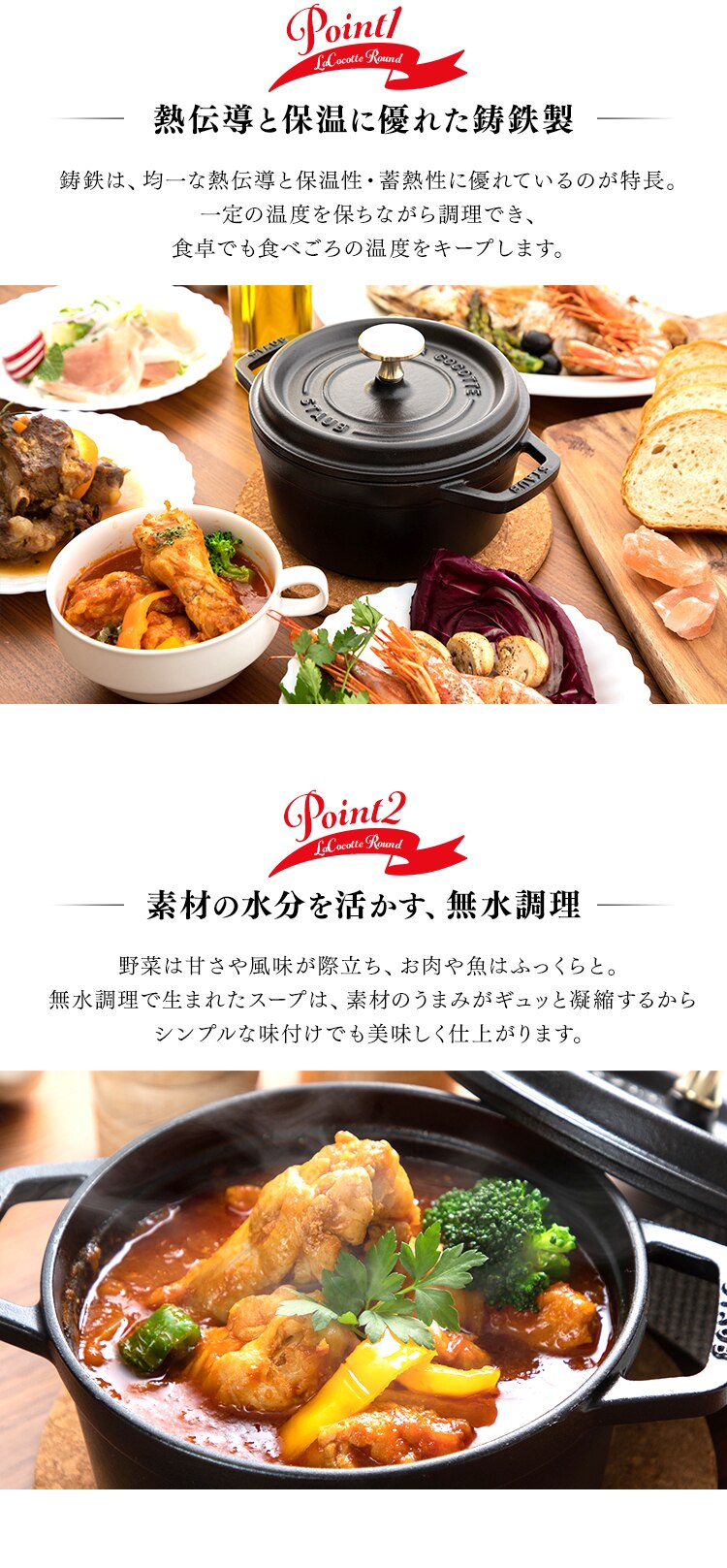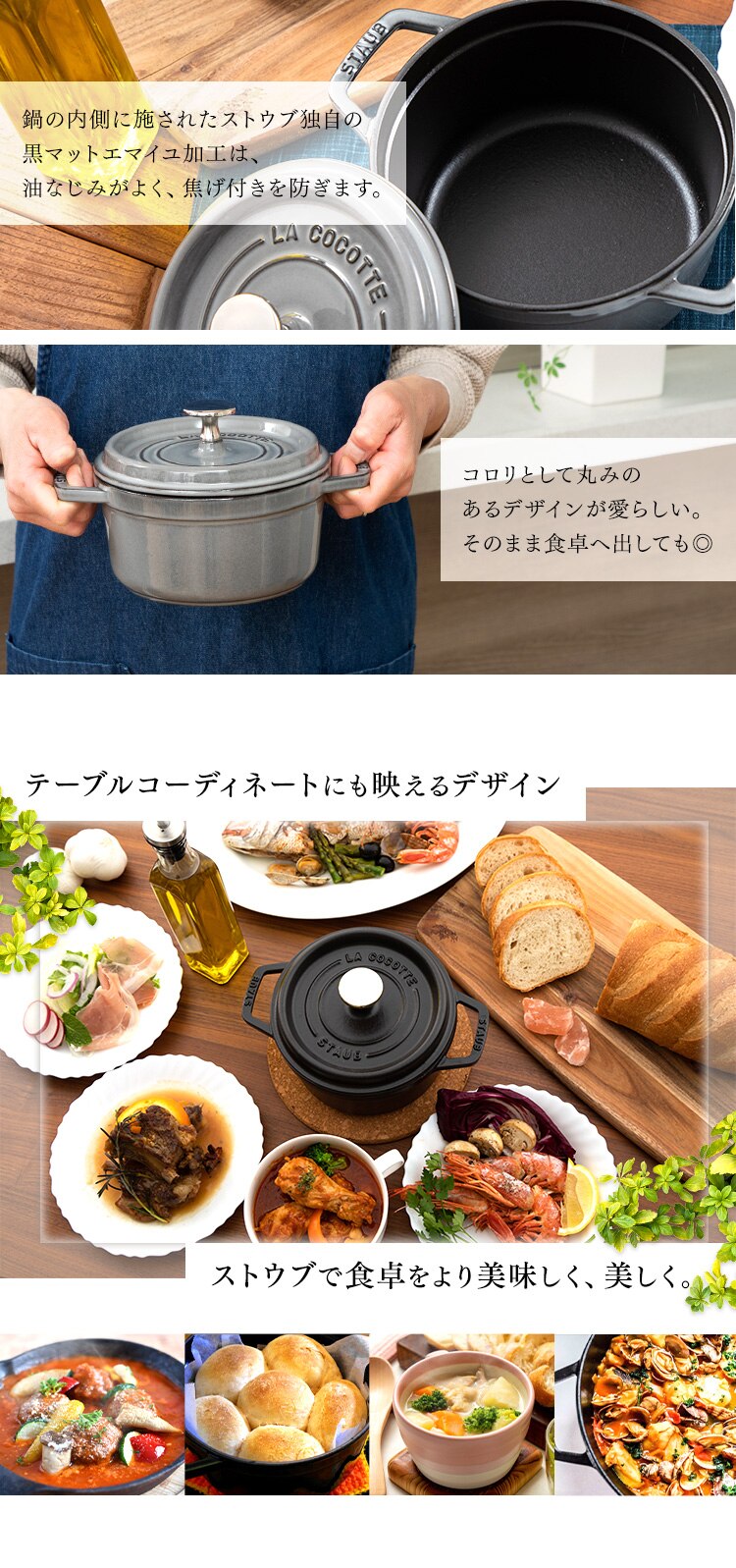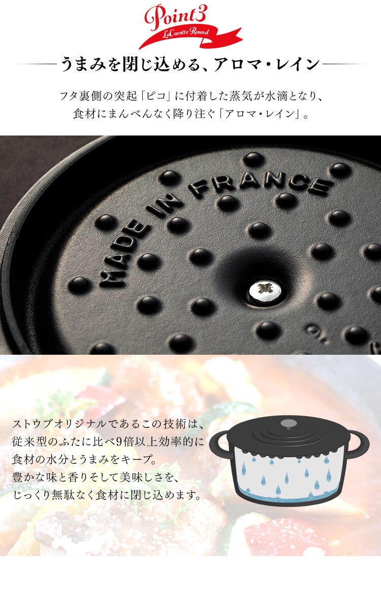 ストウブ社の製品は独自の黒マットエマイユ加工により、さらに使いやすさがアップ!