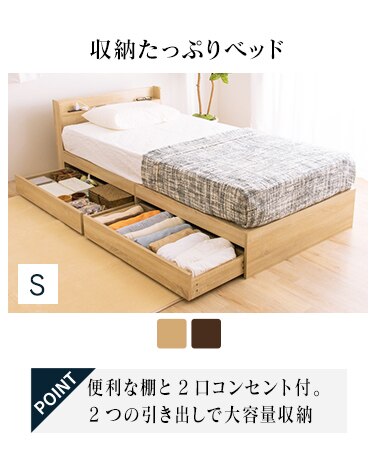 - ベッド シングル すのこ 棚付き コンセント ナチュラル