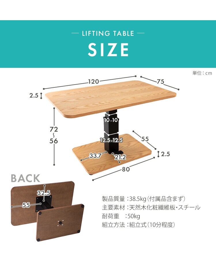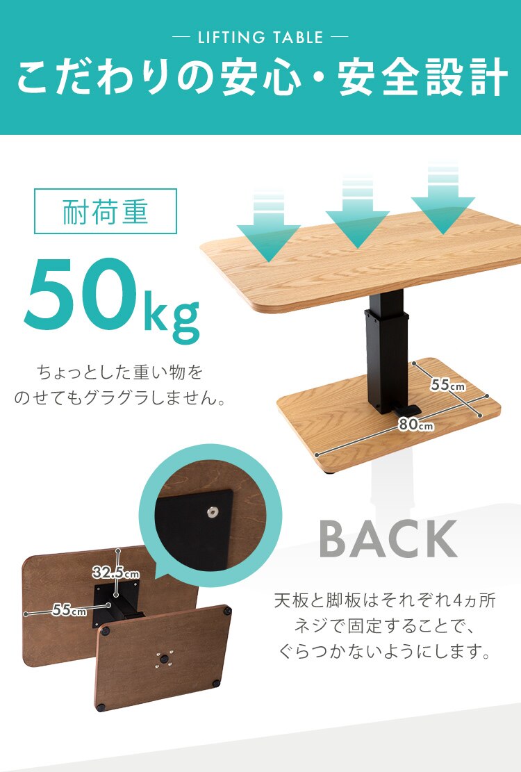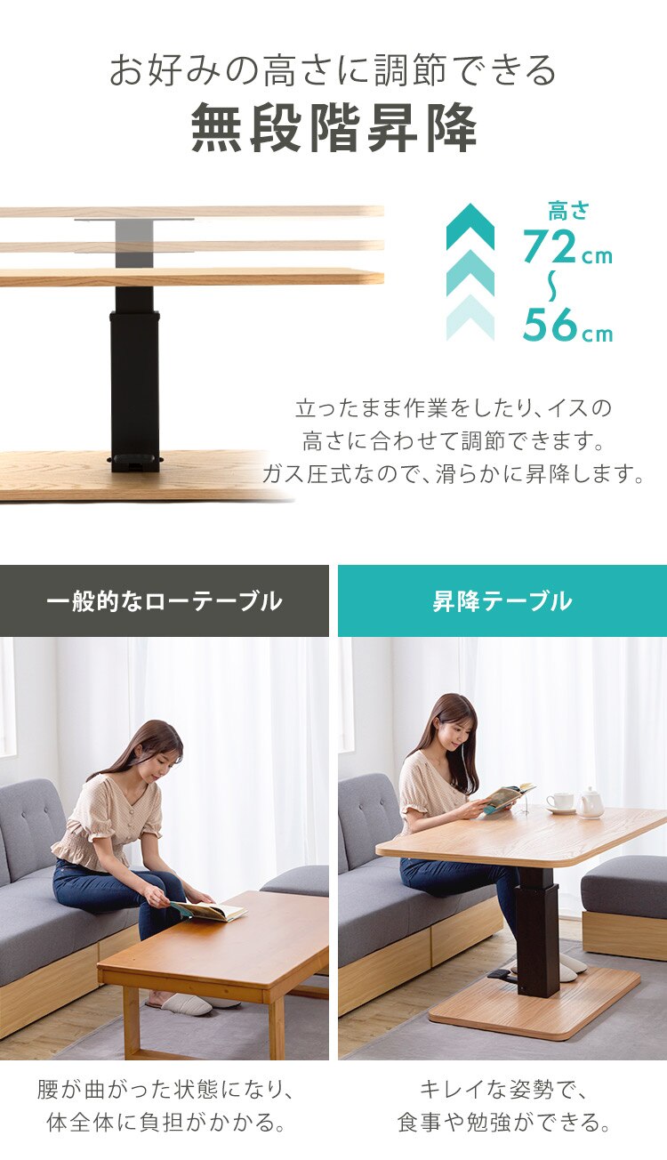 - テーブル 昇降 ST-72ナチュラル 【代引き不可】