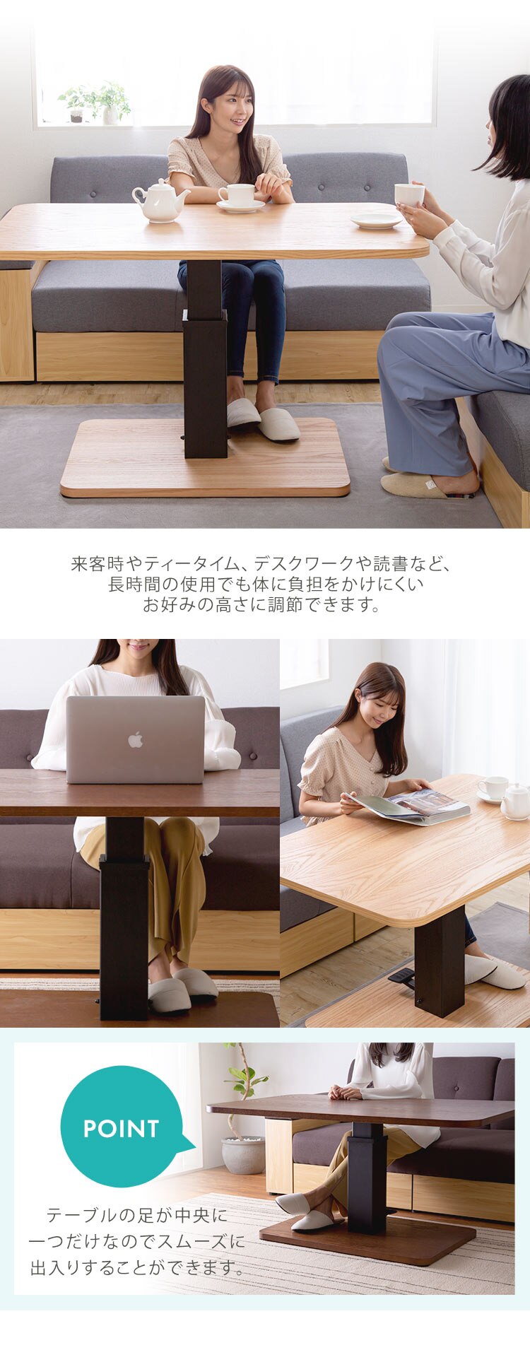 シーンに合わせた高さ調整が可能です。