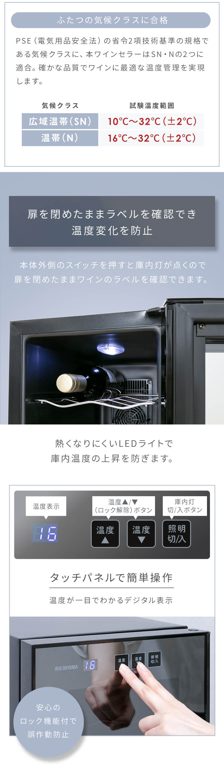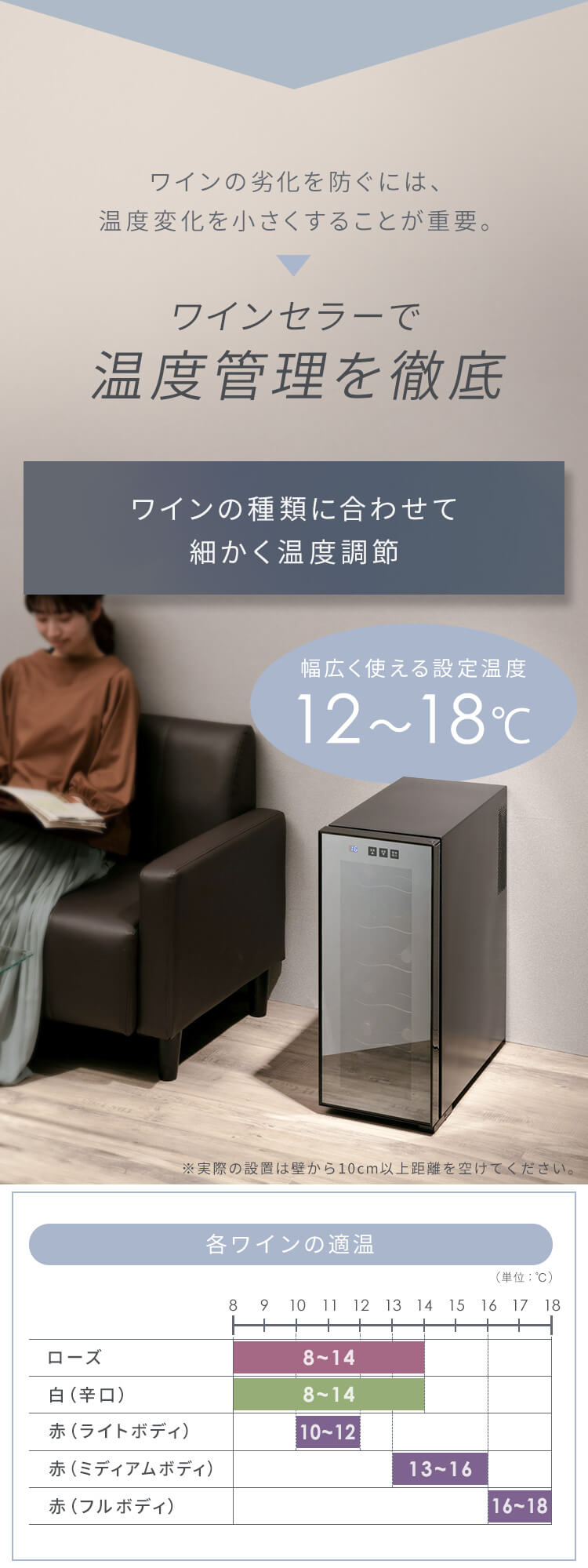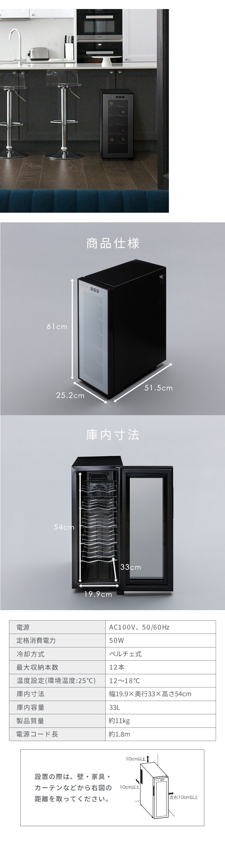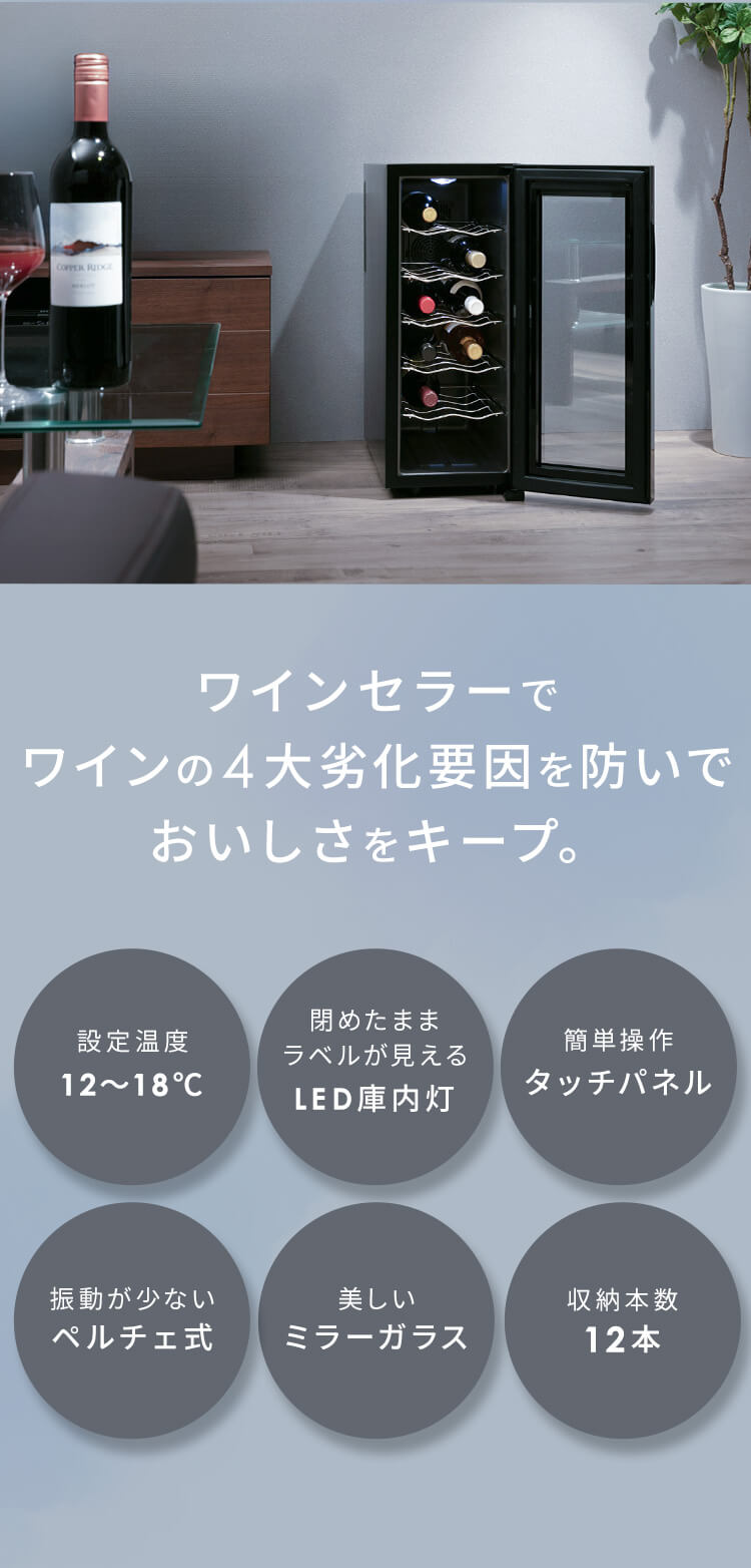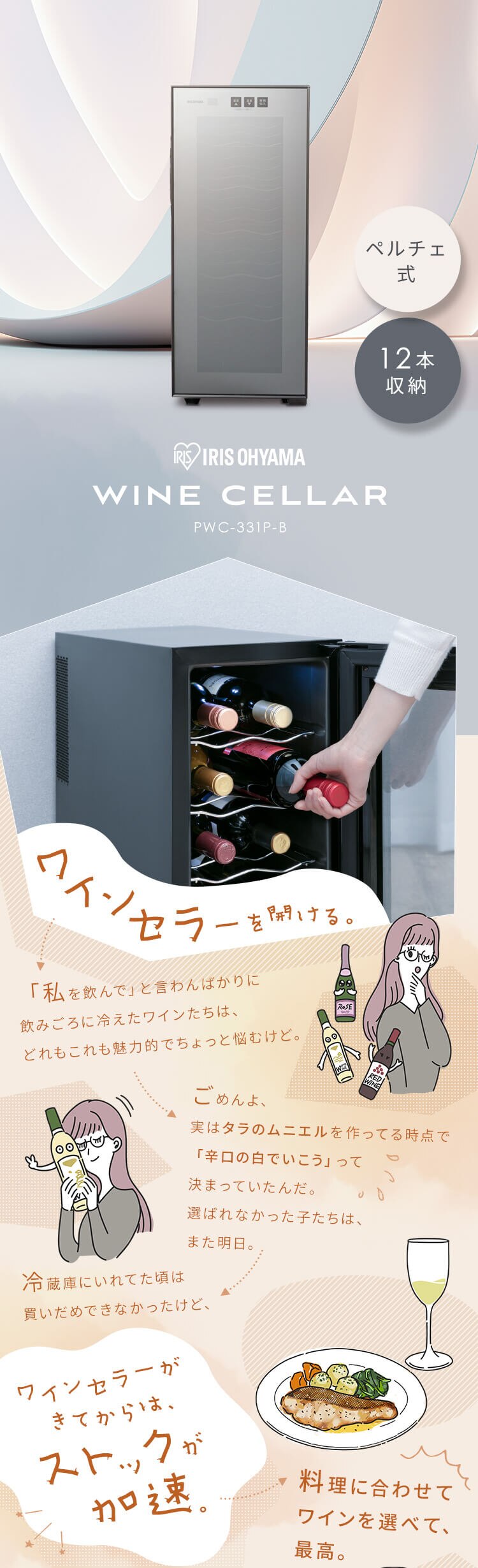 ワインセラー 12本 33L ペルチェ式 タッチパネル PWC-331P-B ブラック
