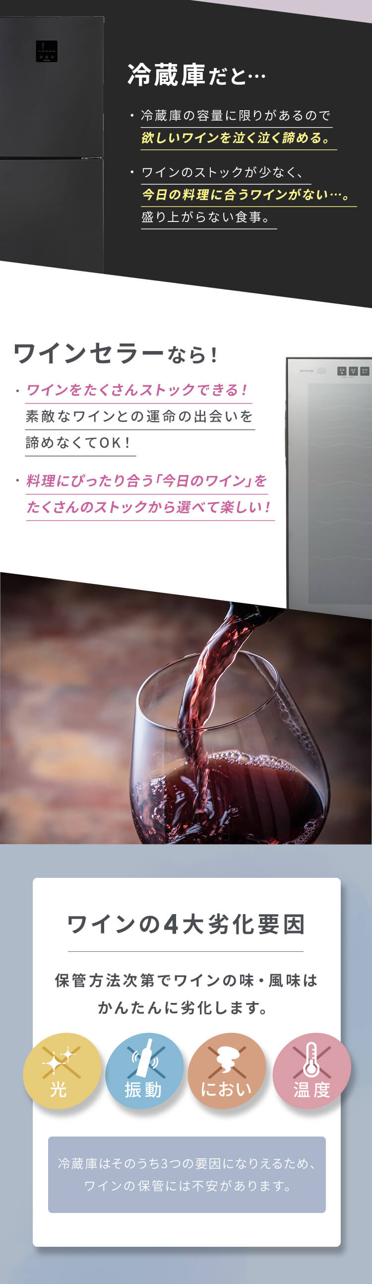 味や風味が変わりやすいワインを、良好な状態で自宅に簡単保存。