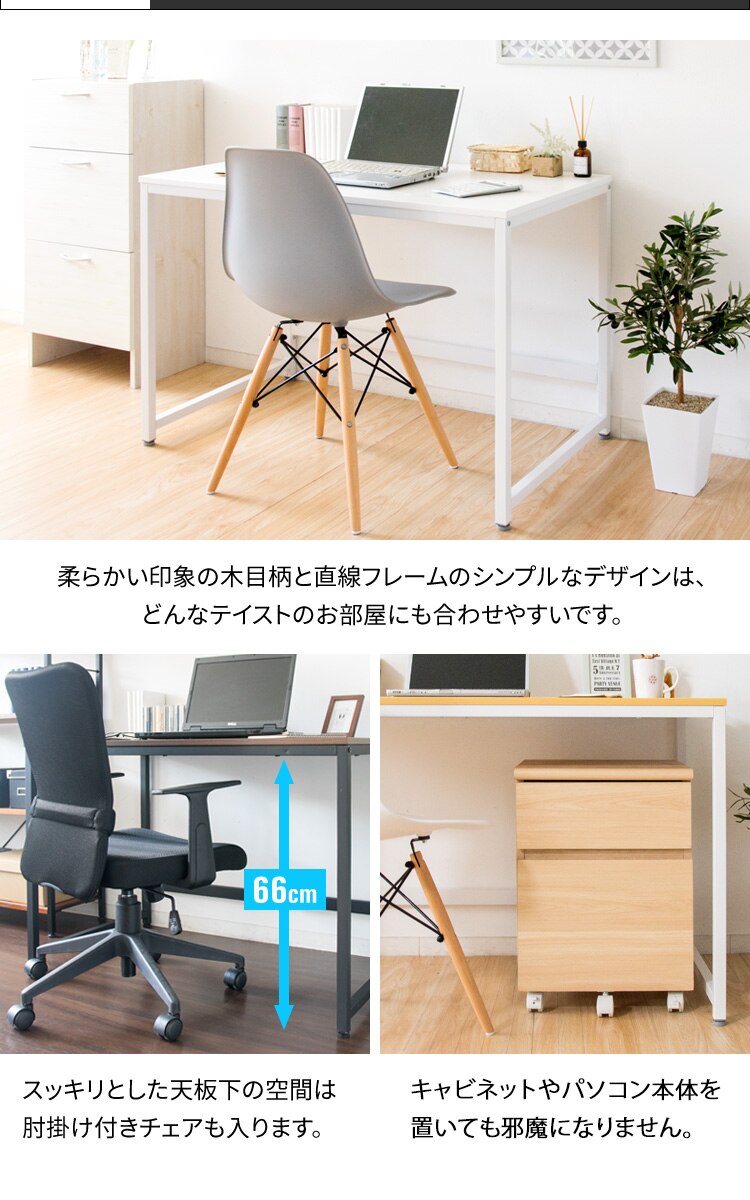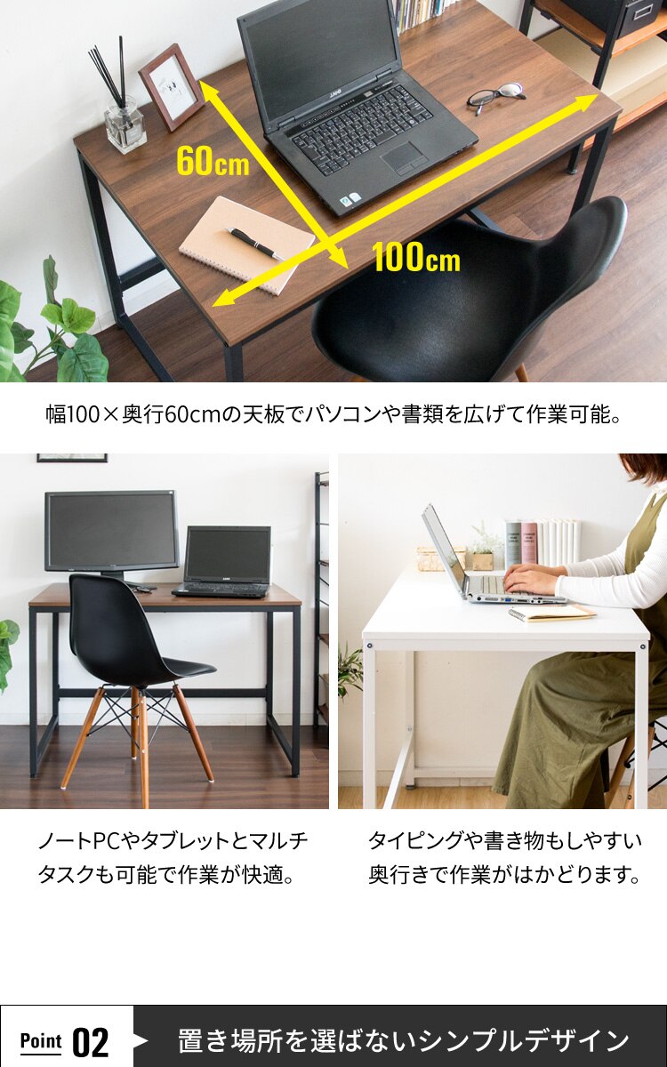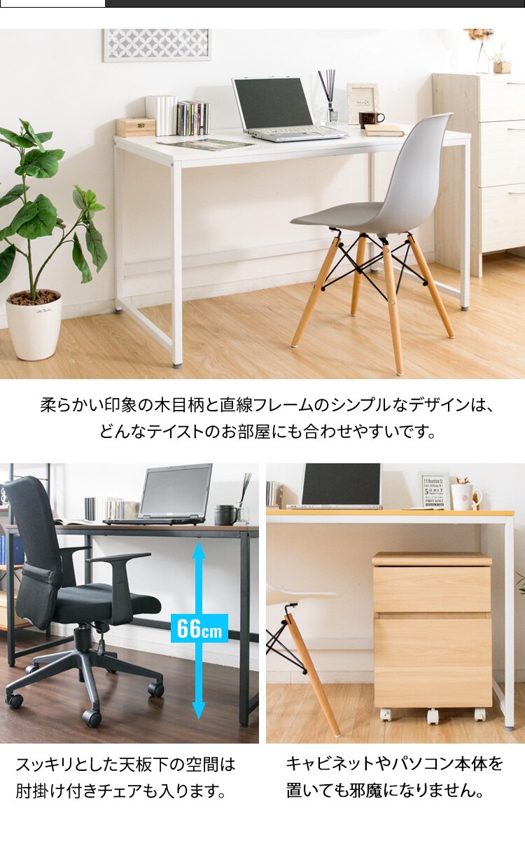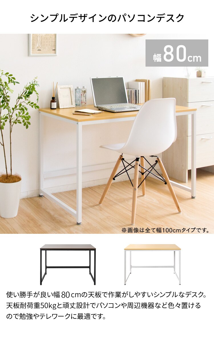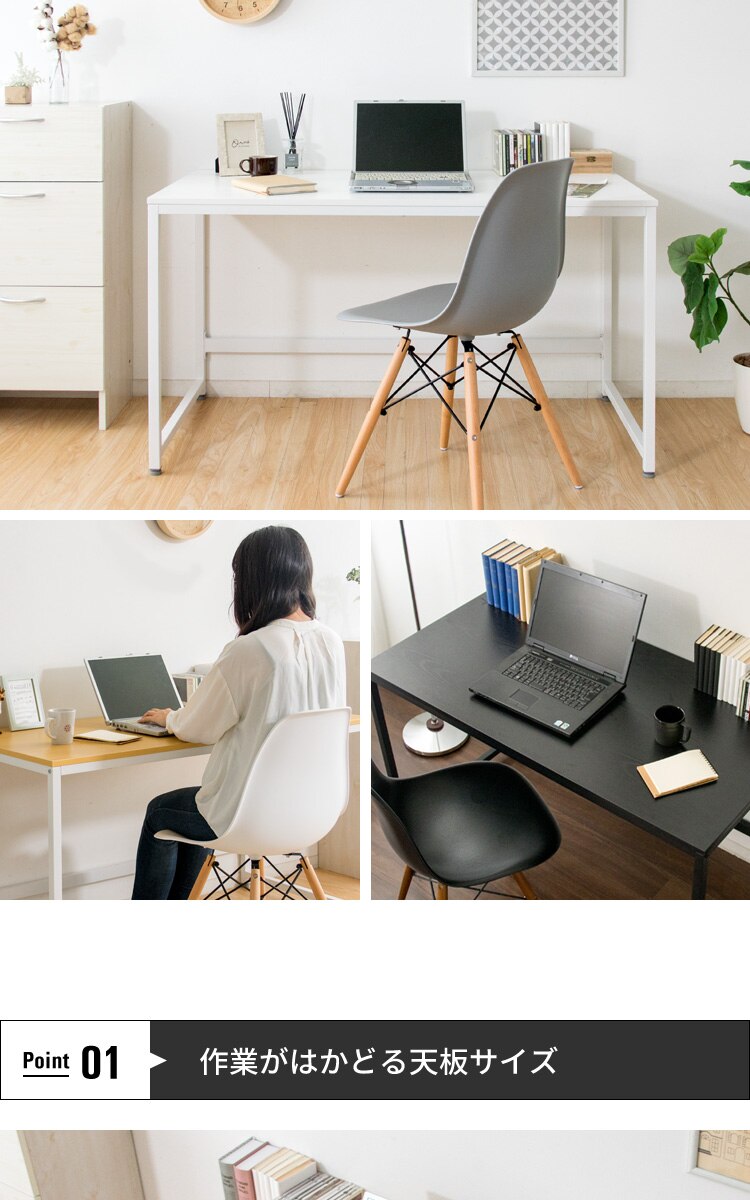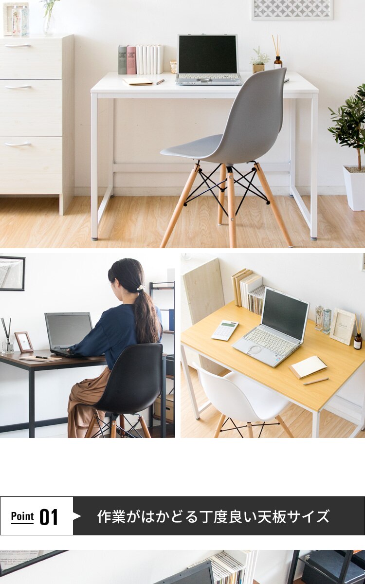 使い勝手が良い幅80cm/幅100cm/幅120cmの天板で作業がしやすいシンプルなデスク。