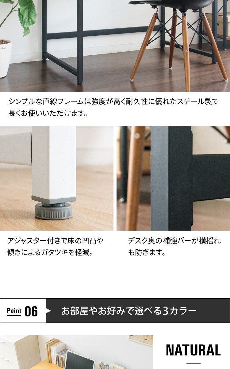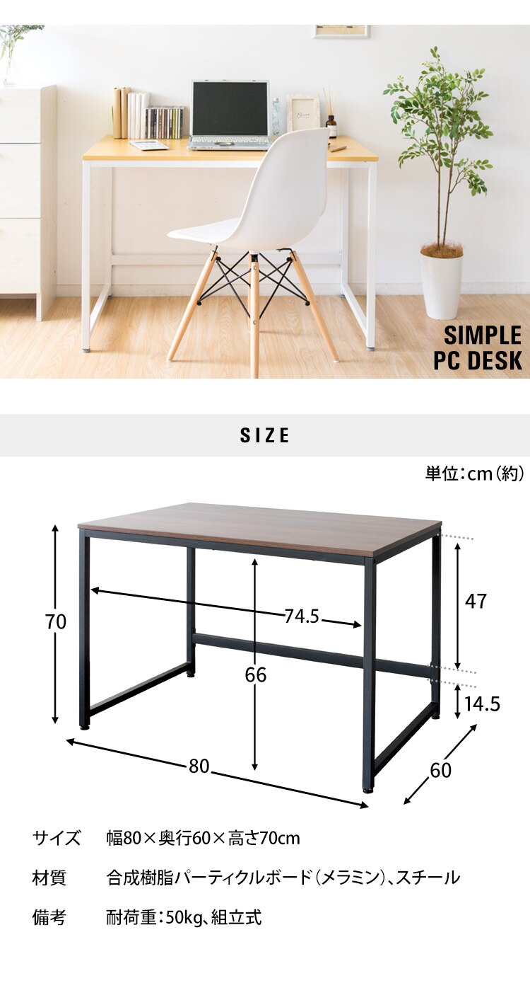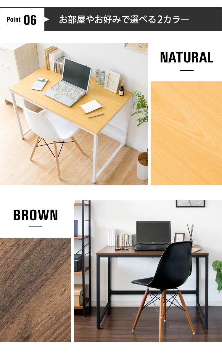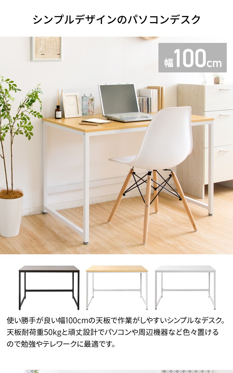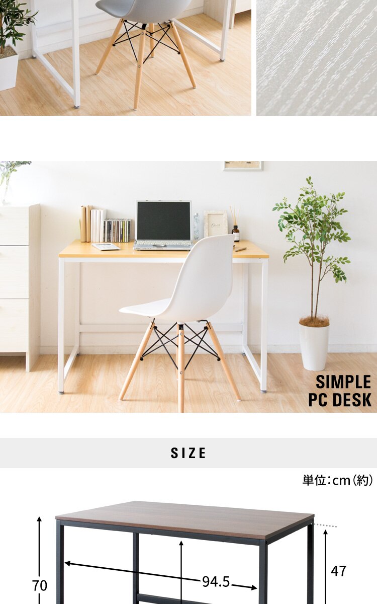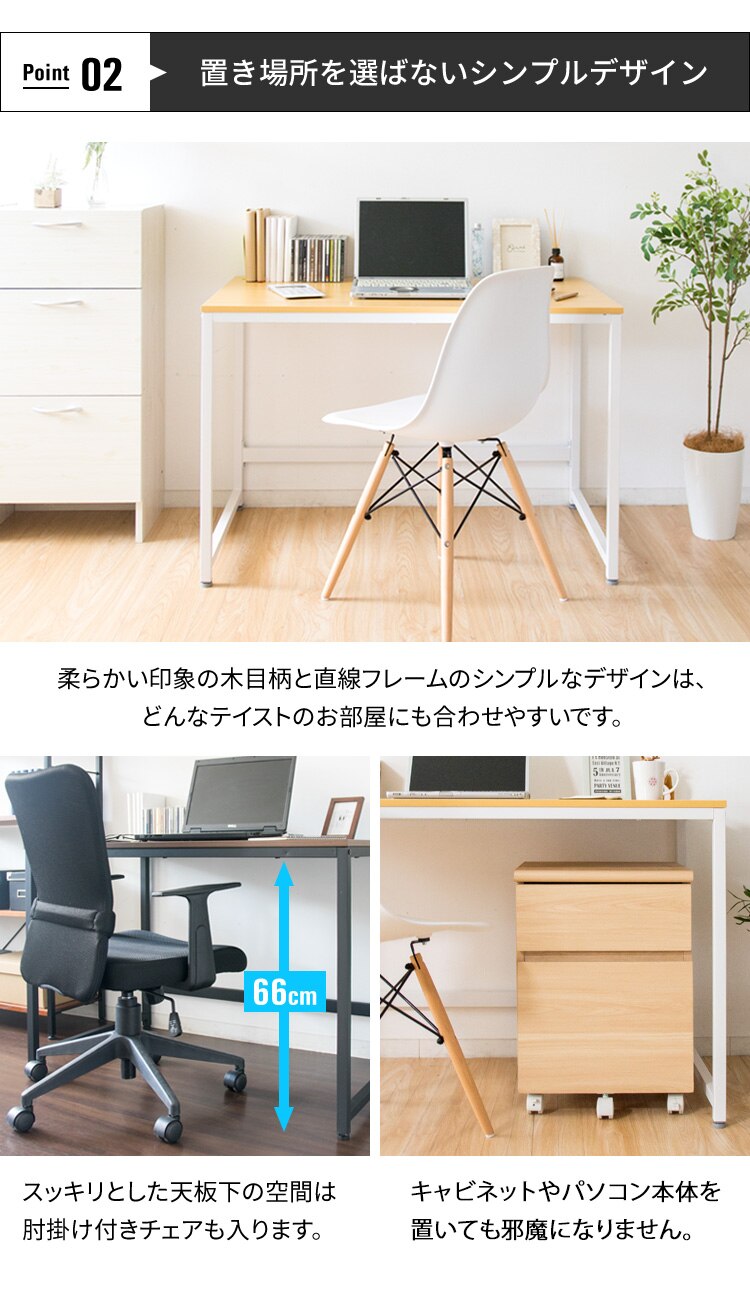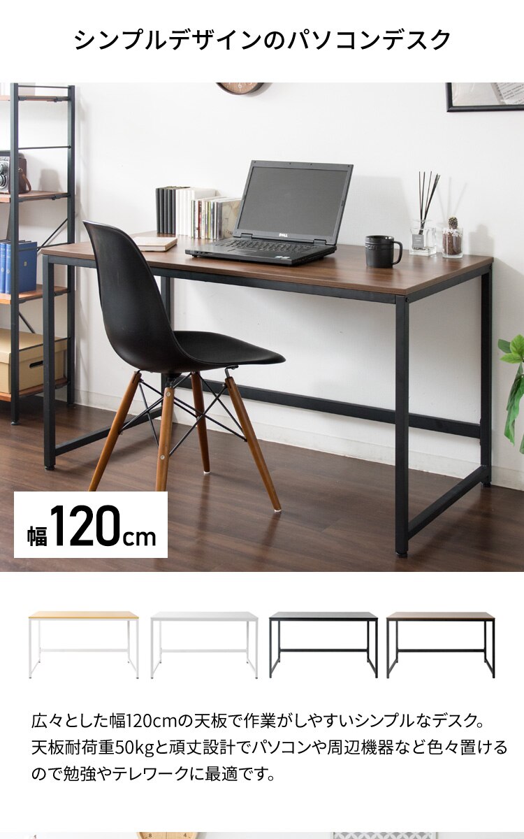 使い勝手が良い幅80cm/幅100cm/幅120cmの天板で作業がしやすいシンプルなデスク。