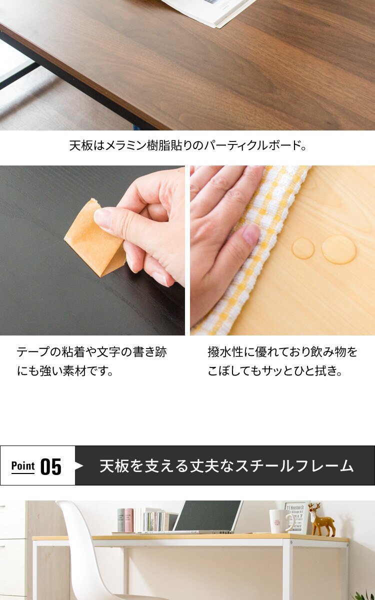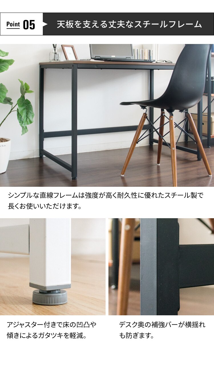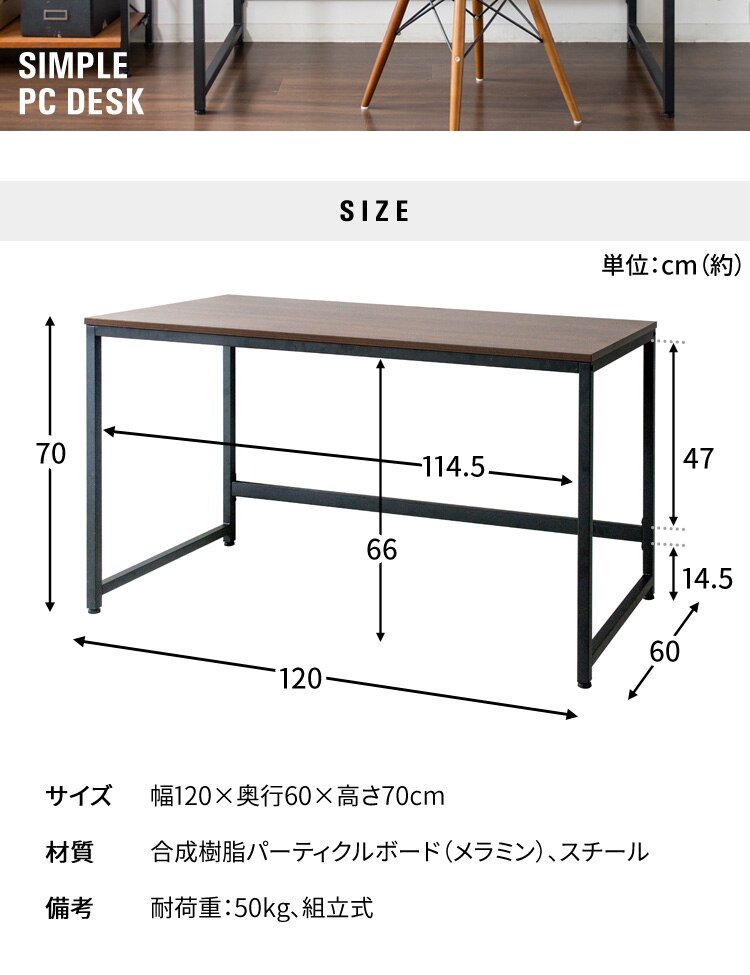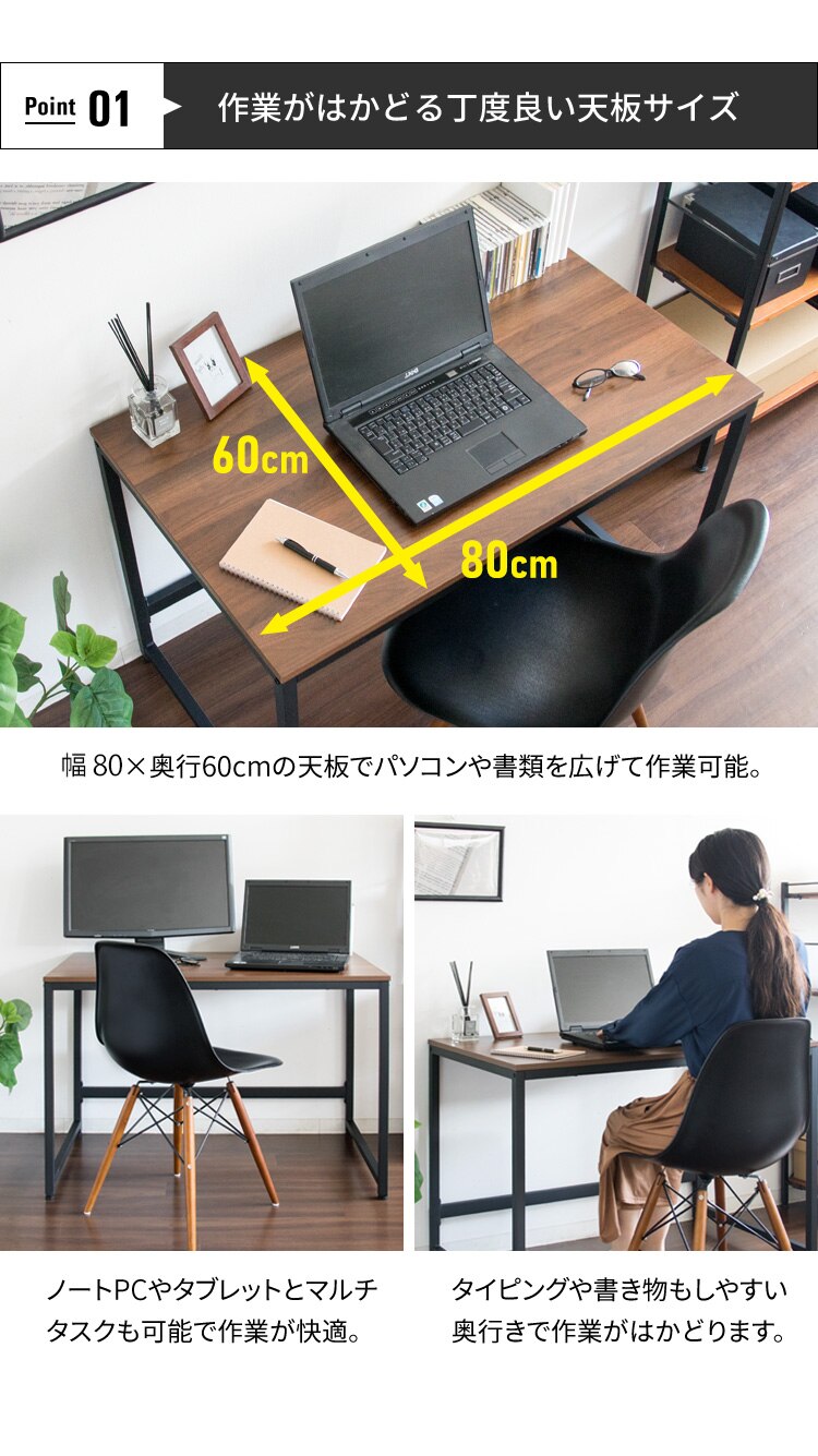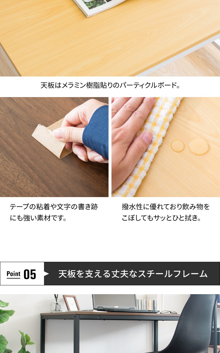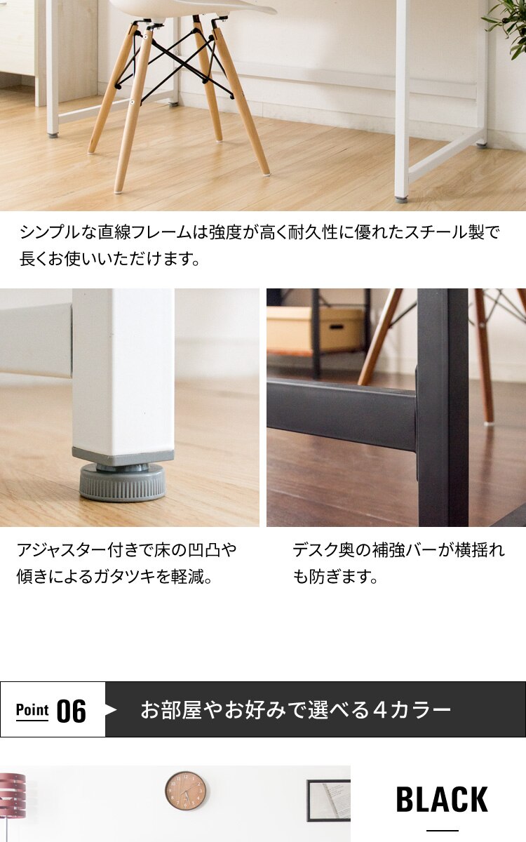 使い勝手が良い幅80cm/幅100cm/幅120cmの天板で作業がしやすいシンプルなデスク。