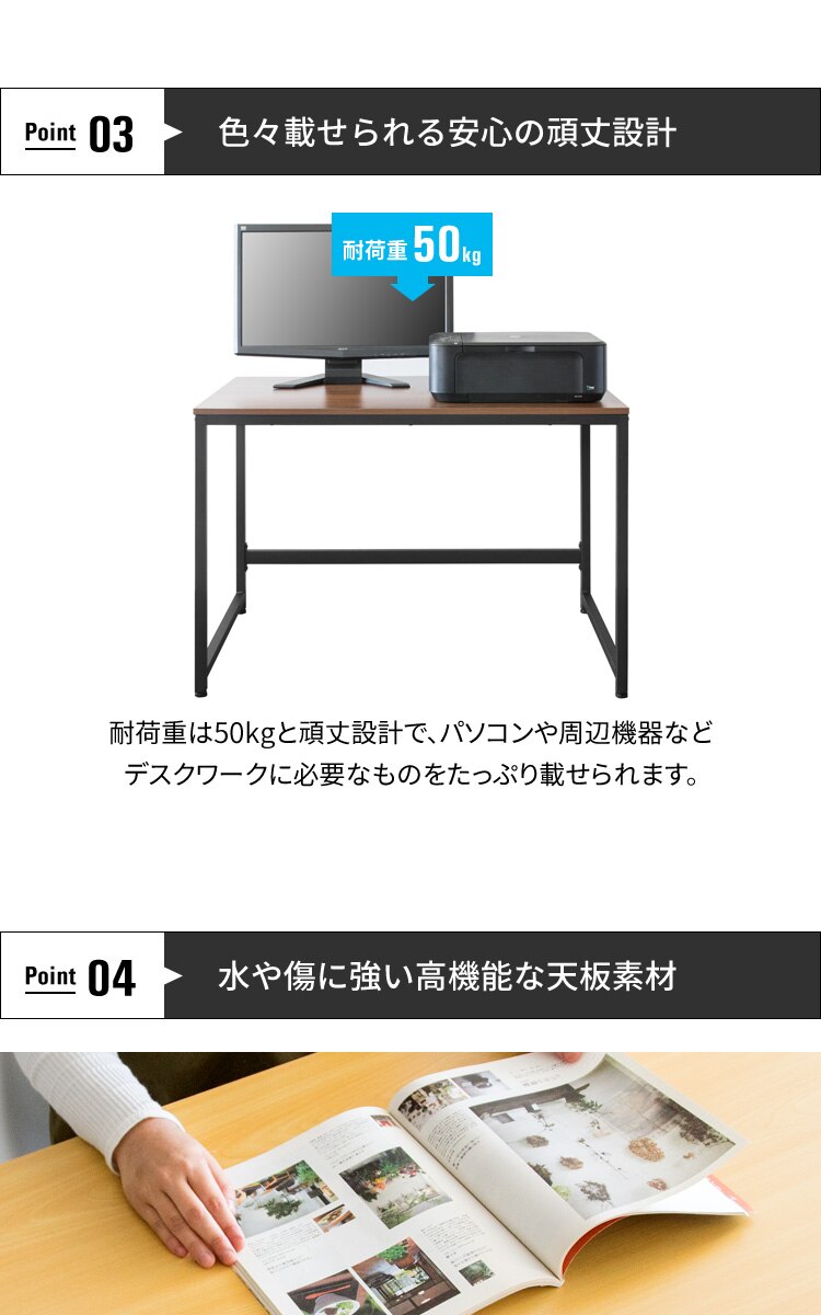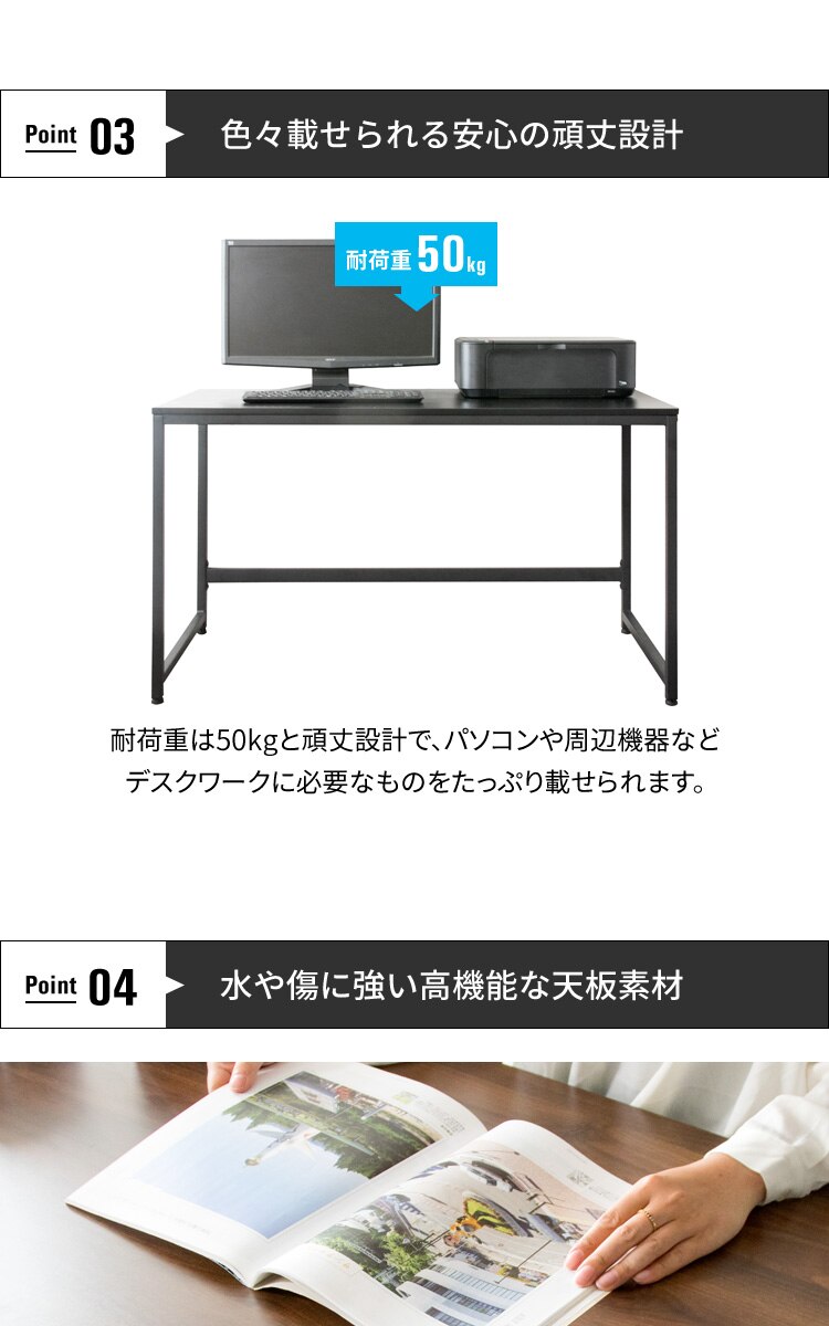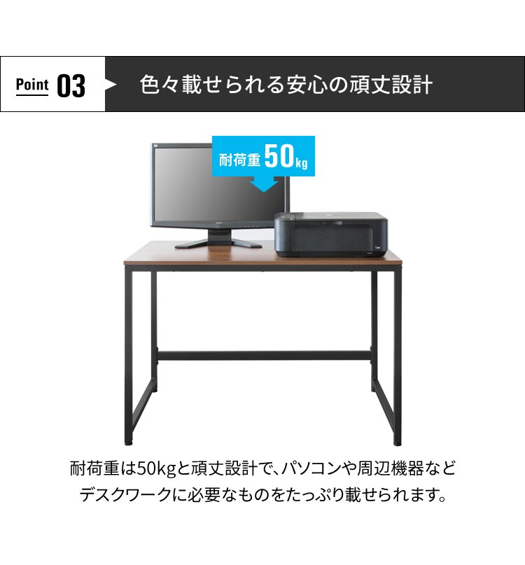 天板耐荷重50kgと頑丈設計で、パソコンや周辺機器など色々置けるので勉強やテレワークに最適です。