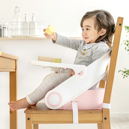 ・付属のセーフティストラップを使って、家や外食先のダイニングチェアに取り付けてお使い頂けます。