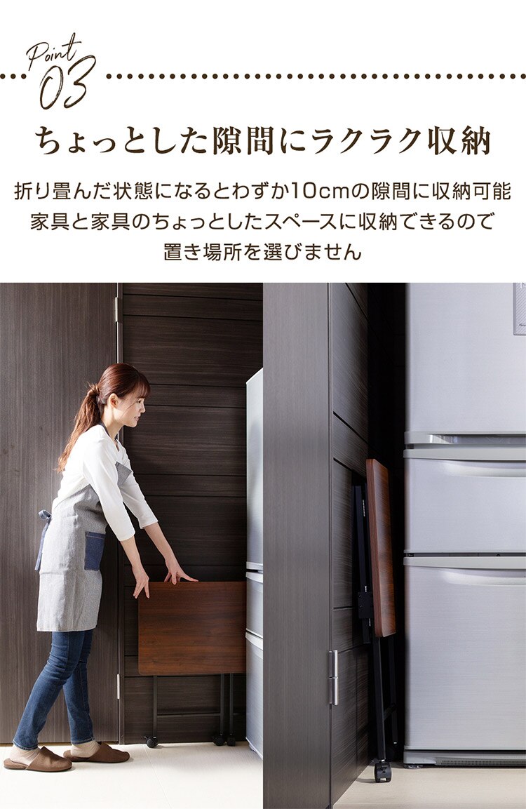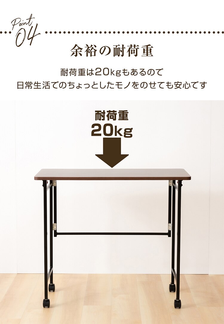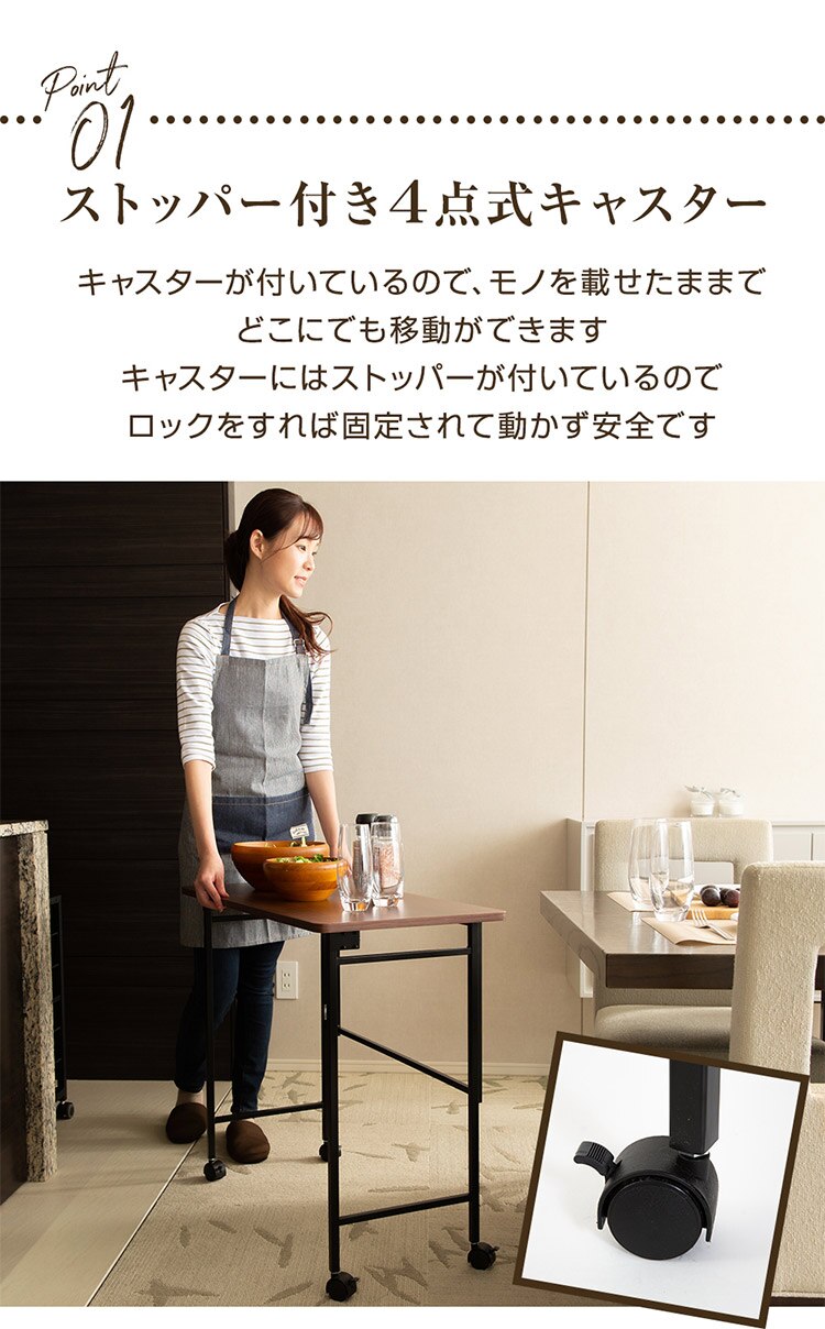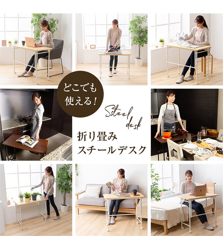 デスクワーク作業やミシン・アイロン掛けなど家事のサポートテーブル、ベッド・キッチンのサイドテーブルなど様々なシーンで活躍します。