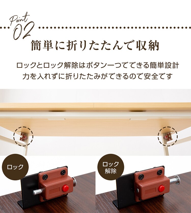 リビングや寝室・キッチンなど、お好きなところで便利に使える80cm幅の折り畳み式デスク。