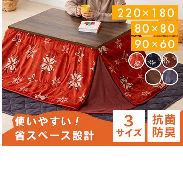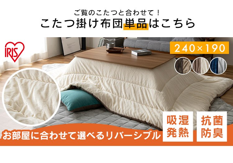 天板に美しい木目の化粧板、脚部はラバーウッドを使用し、天然木の質感を活かしたぬくもりを感じるこたつテーブルです。