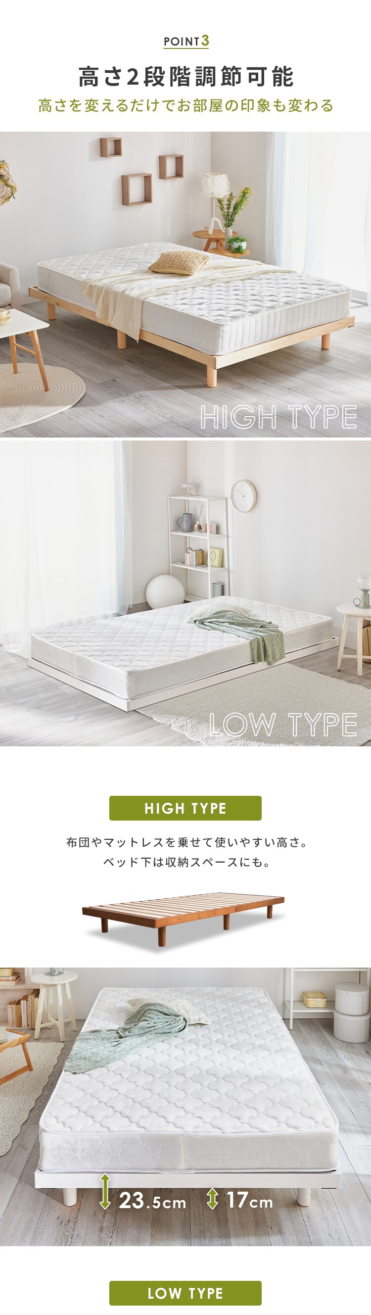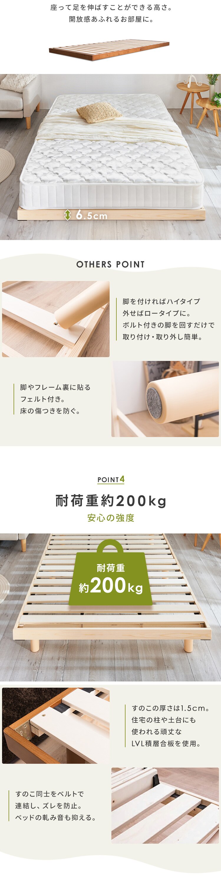 ■高さ2段階、場所を選ばないヘッドレスタイプのがっちりスノコベッド。
