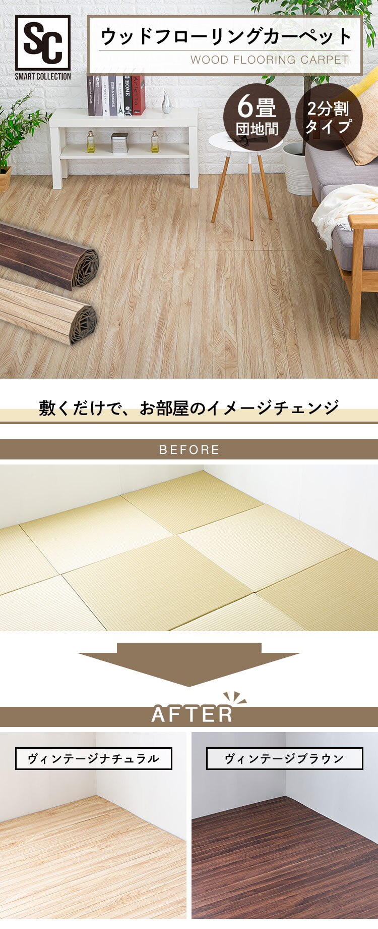 ウッドカーペット 敷くだけ簡単 345cm×243cm 6畳 団地間 ヴィンテージナチュラル WDFC-6D