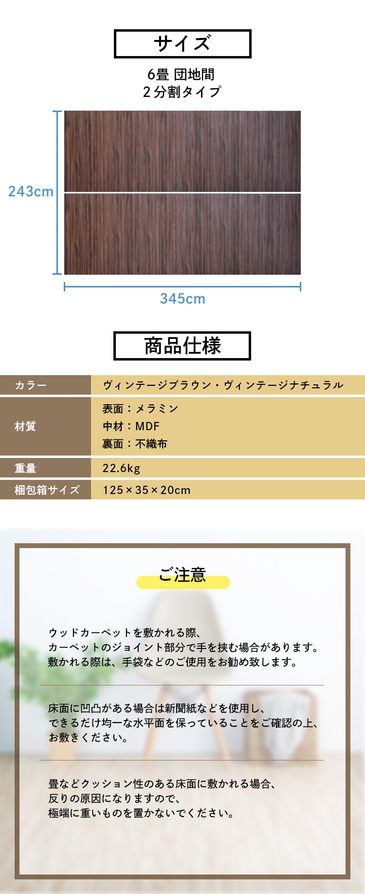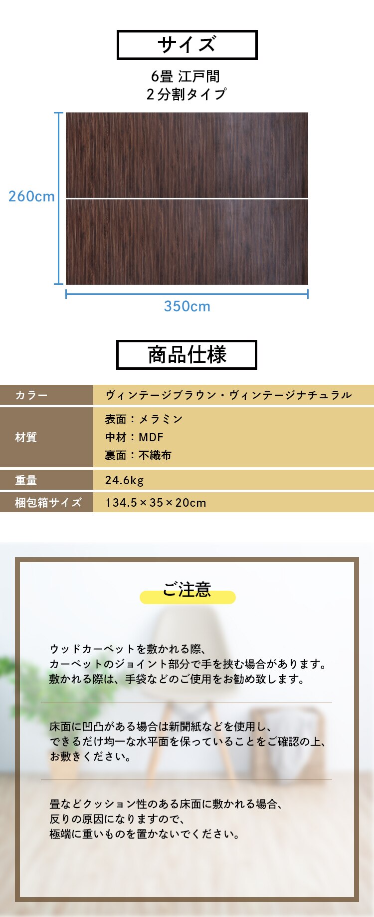 ●サイズ:6畳江戸間/2分割タイプ