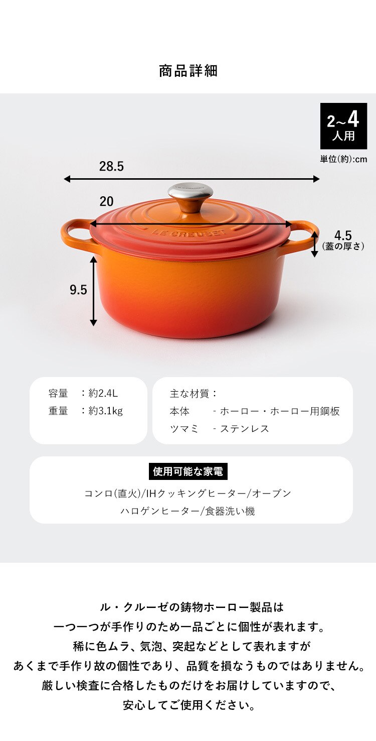 - 鍋 IH/ガス火 20cm 2.4L ル・クルーゼ Casseruole バンブーグリーン