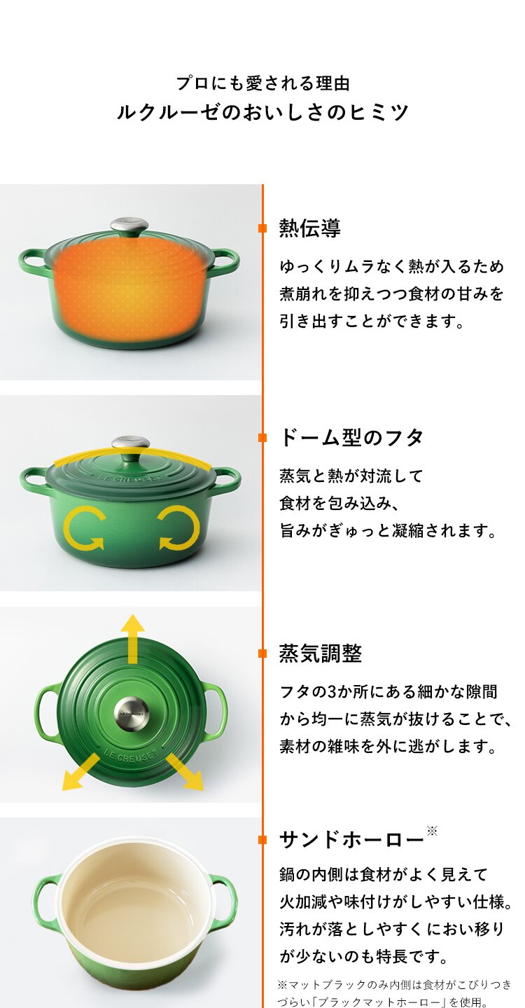 優れた熱伝導でゆっくりムラなく熱が入り、食材が煮崩れしにくく、食材の甘みを引き出します。