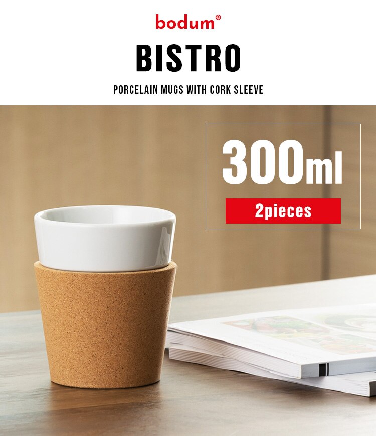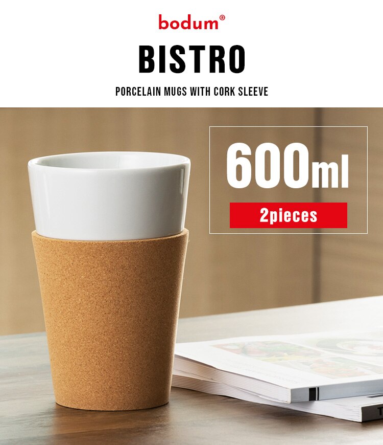 BISTROグラスは、持つ部分をコルクで包んだ美しいデザインの磁器カップです。