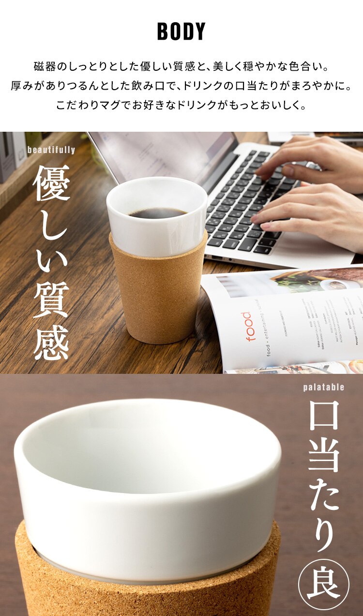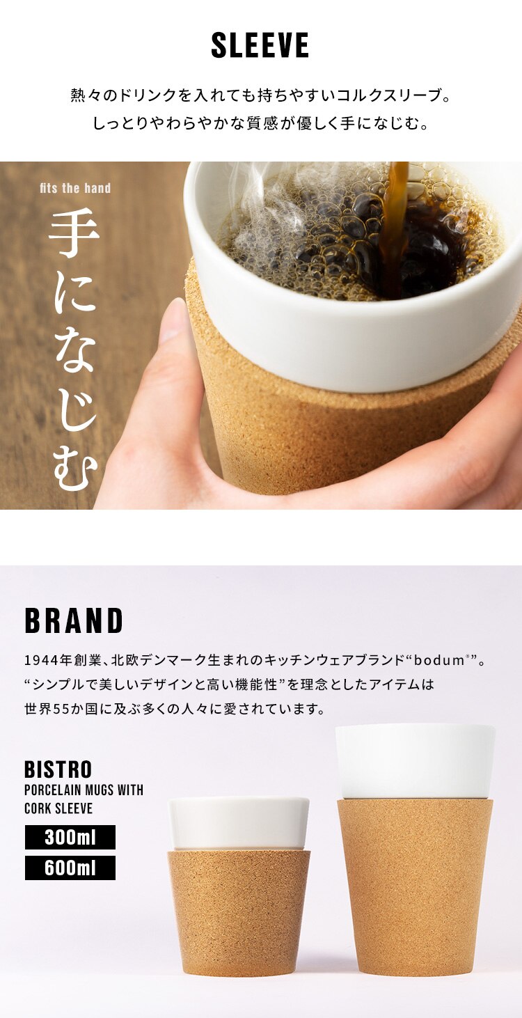 ●材質/コップ:磁器、スリーブ:コルク