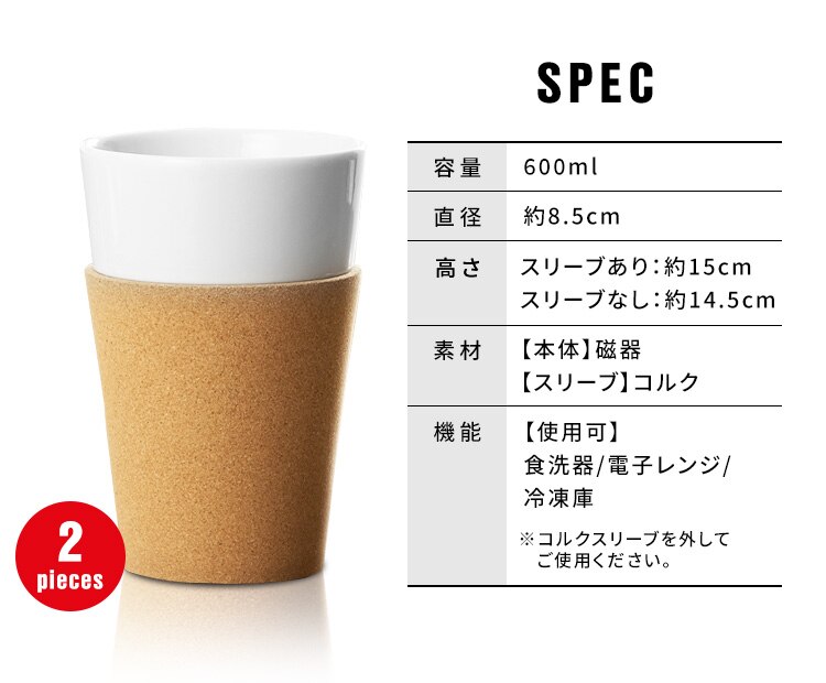 食洗機、電子レンジ、冷凍庫でも使用できます(コルクスリーブは外してご使用ください)。