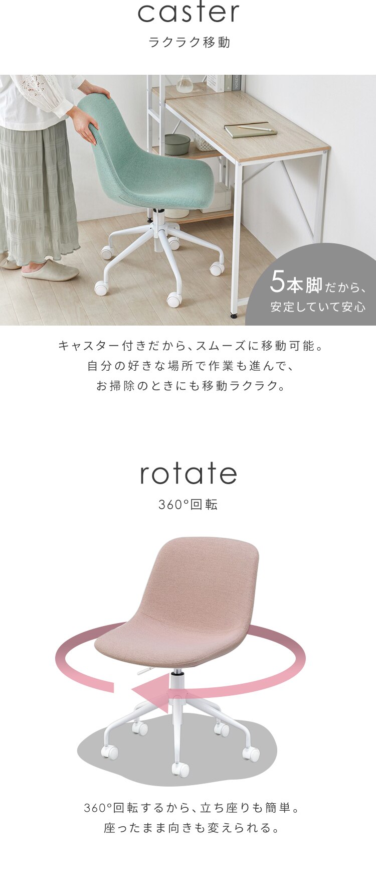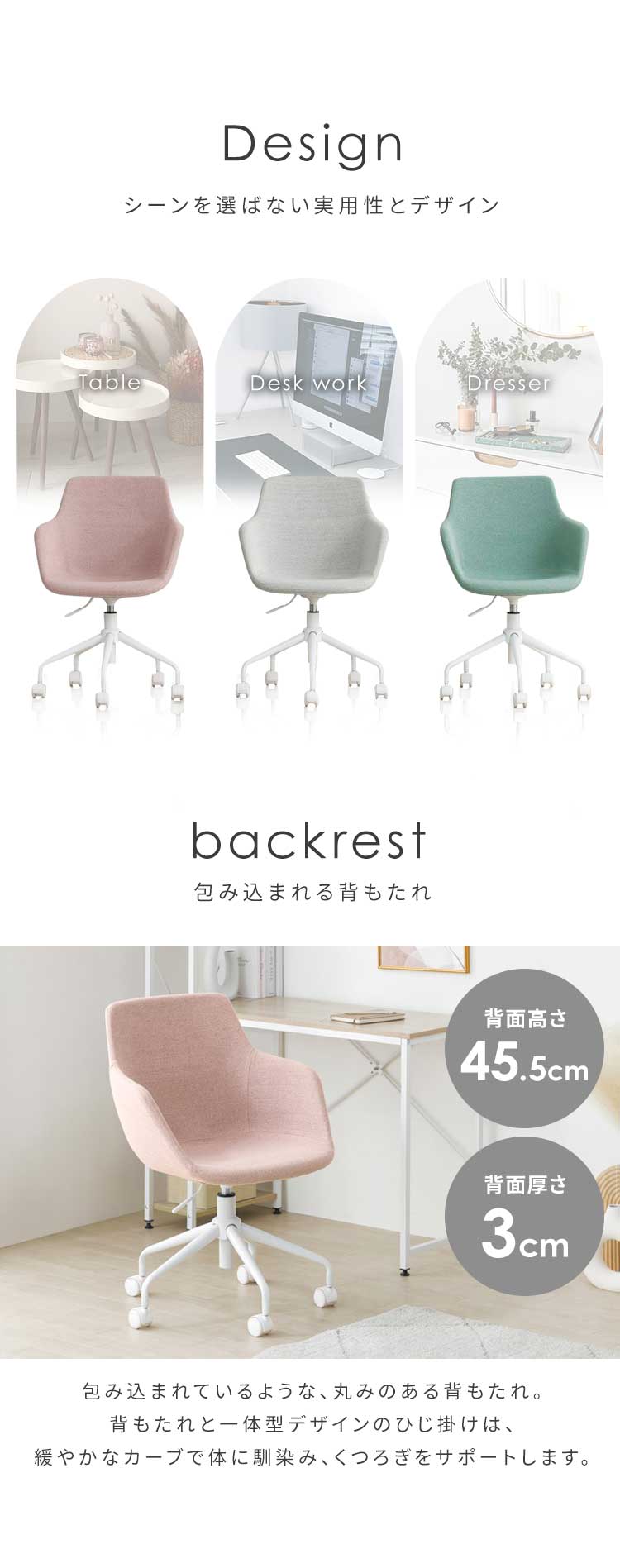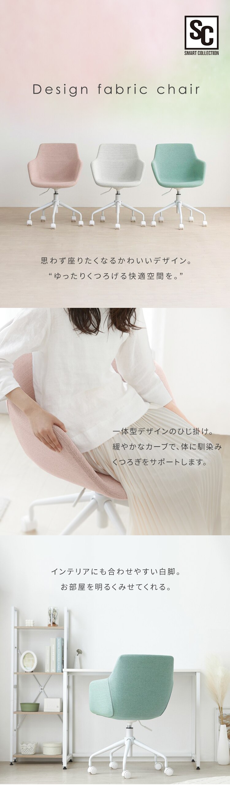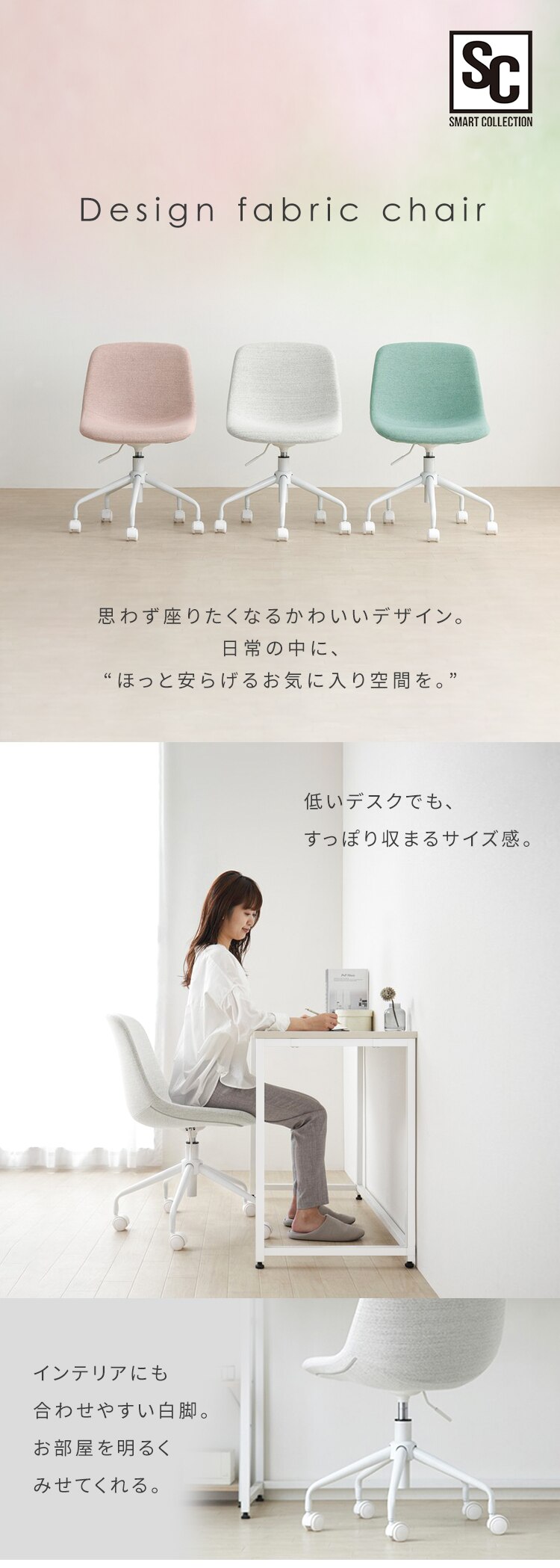思わず座りたくなるかわいいデザインと、目にやさしい柔らかなカラーのファブリックチェアです。