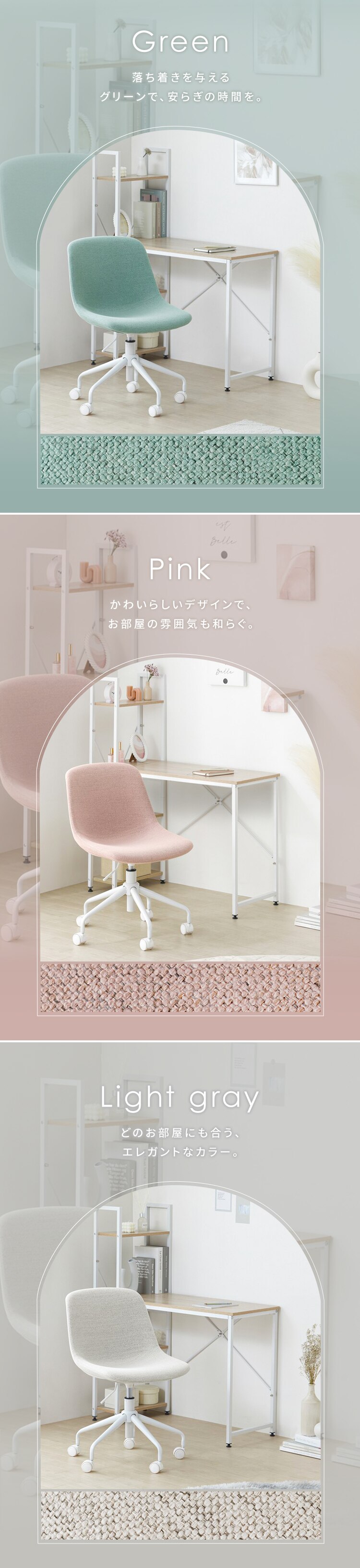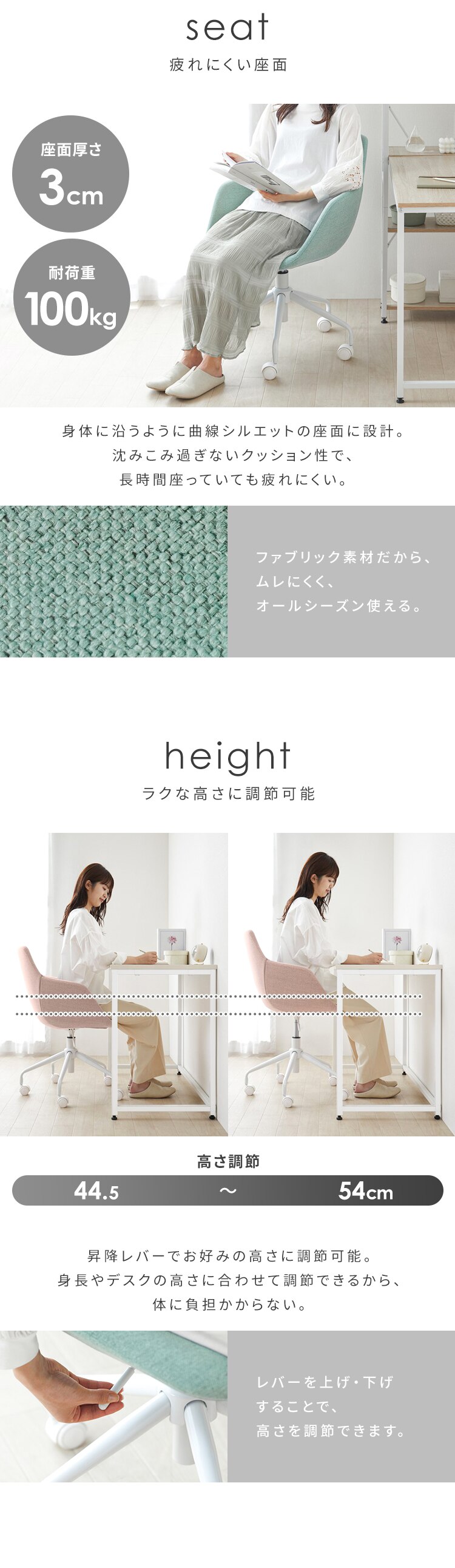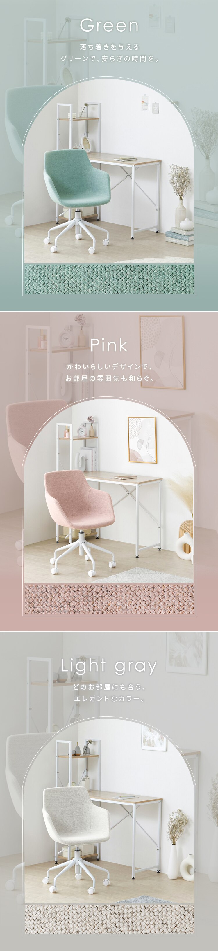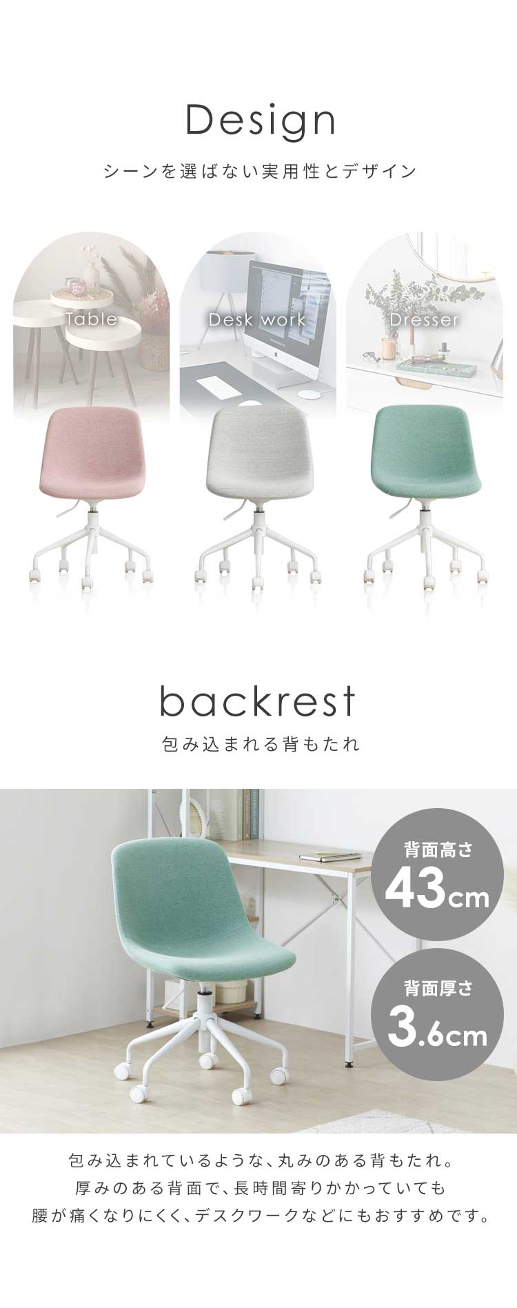 思わず座りたくなるかわいいデザインと、目にやさしい柔らかなカラーのファブリックチェアです。