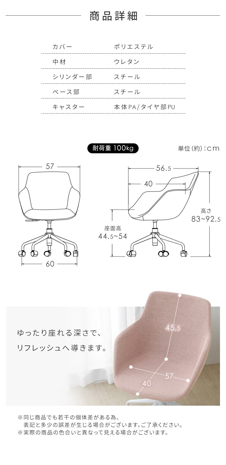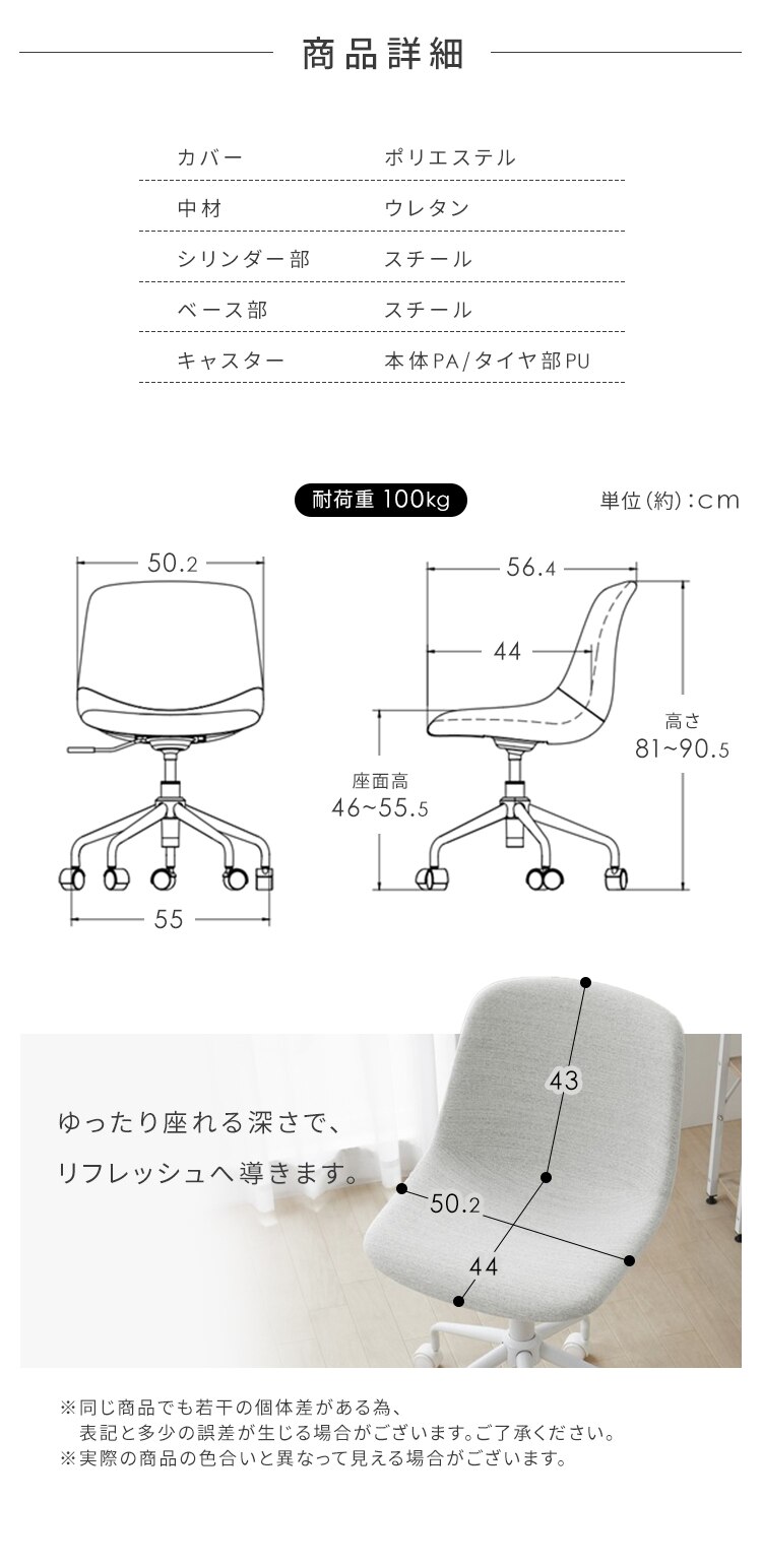●商品サイズ(cm):幅約55(脚部分)×奥行約56.4×高さ約81〜90.5(座面高約46〜55.5)