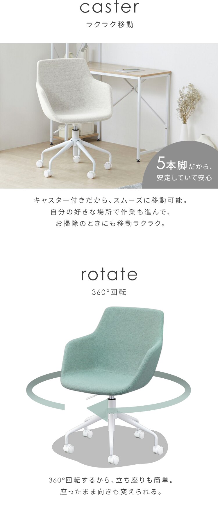 360°回転するから立ち座りや向きを変えるのも簡単、またキャスター付きなので移動もスムーズにできます。
