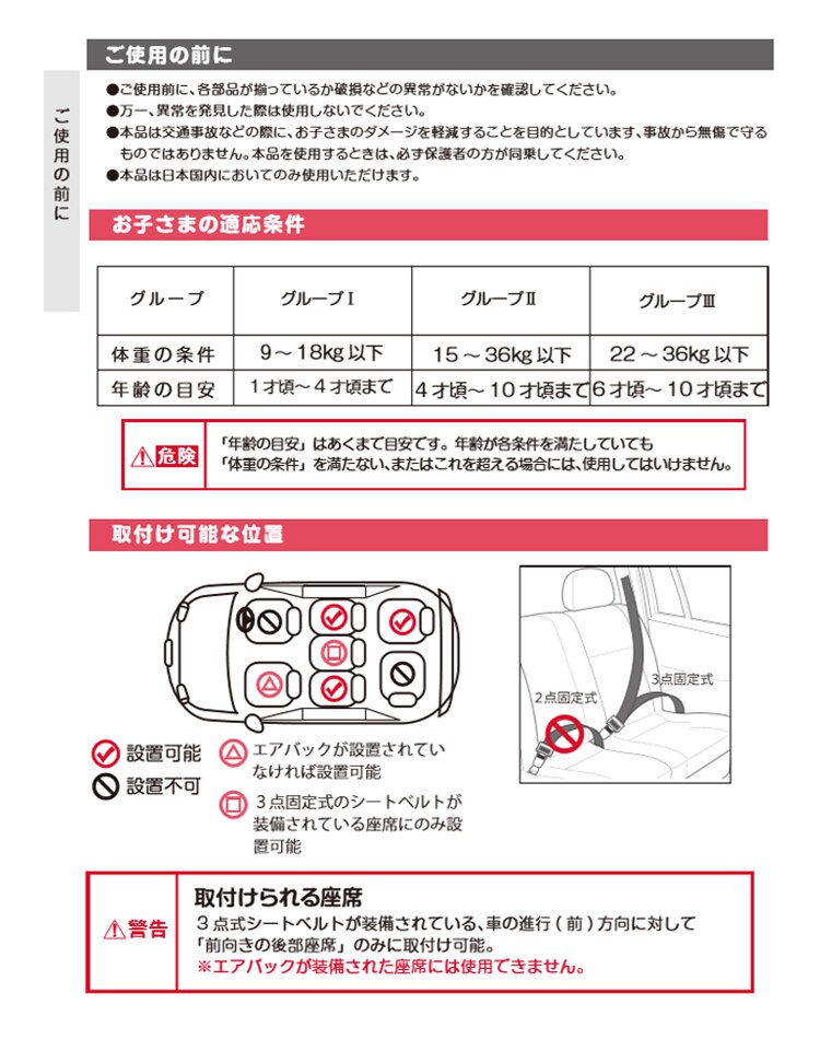 1歳〜10歳まで(体重9kg〜36kgまで)、なが〜く使えます。